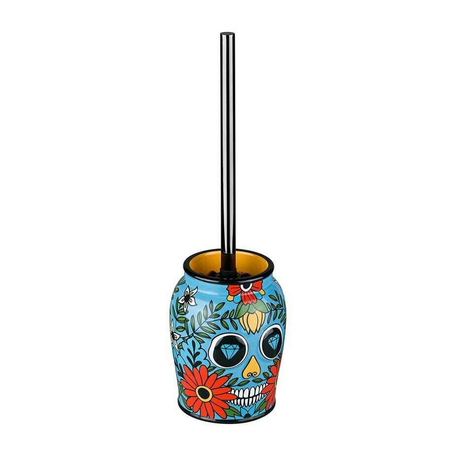 Ершик для унитаза с керамической подставкой с черепом черепа. Изделие стилизовано под один из самых известных мексиканских праздников День Мертвых. Оригинальный дизайн ершика прекрасно сочетается с настольными аксессуарами Los Muertos и другими элементами коллекции - полотенцами, ковриками и занавеской для ванной.