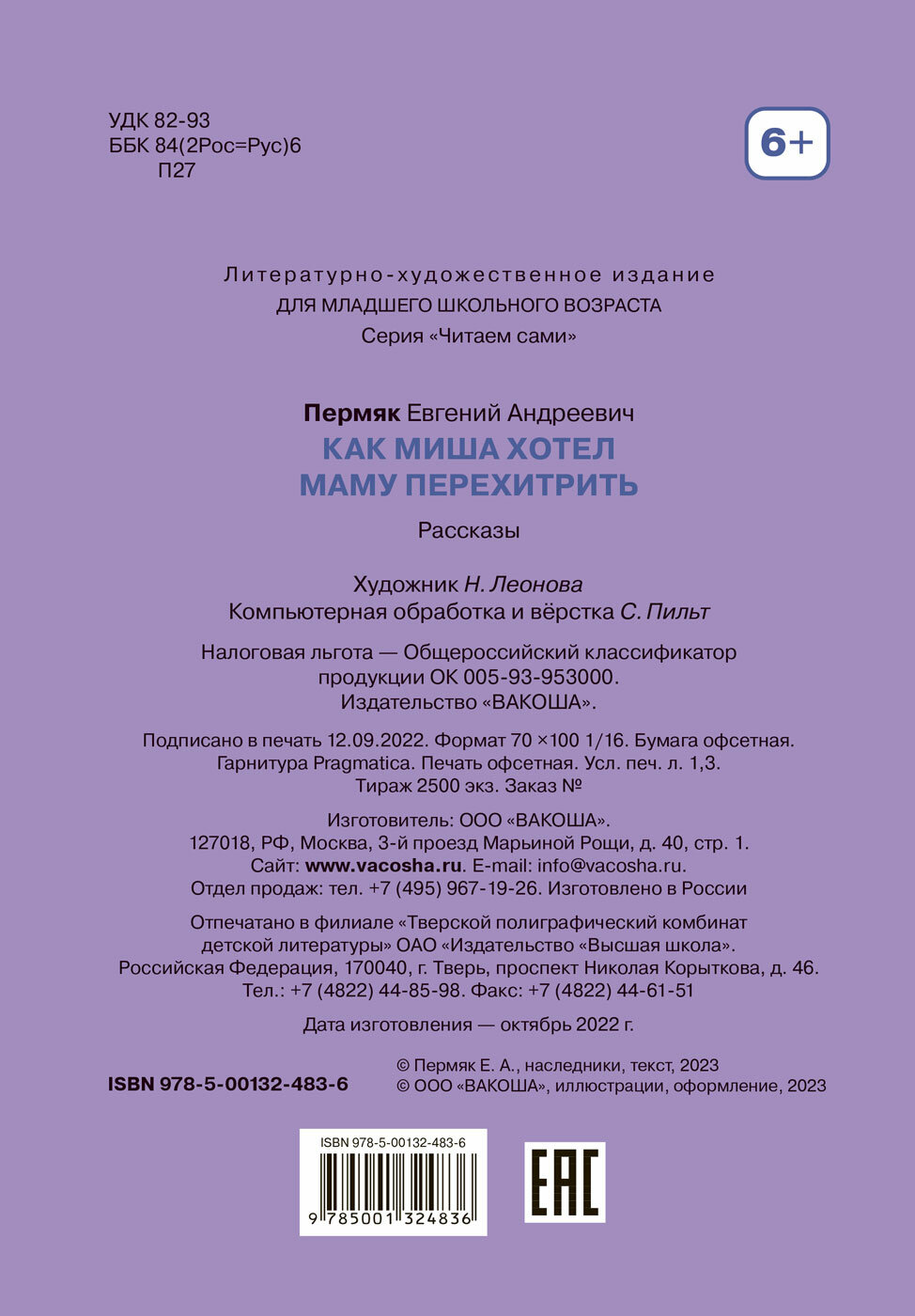 На сегодняшний день товар «Книга: Как Миша хотел маму перехитрить (Пермяк Евгений Андреевич); Вакоша, 2023» можно купить с кешбеком в 4 магазинах: book24, Буквоед, Читай-город, Яндекс.Маркет