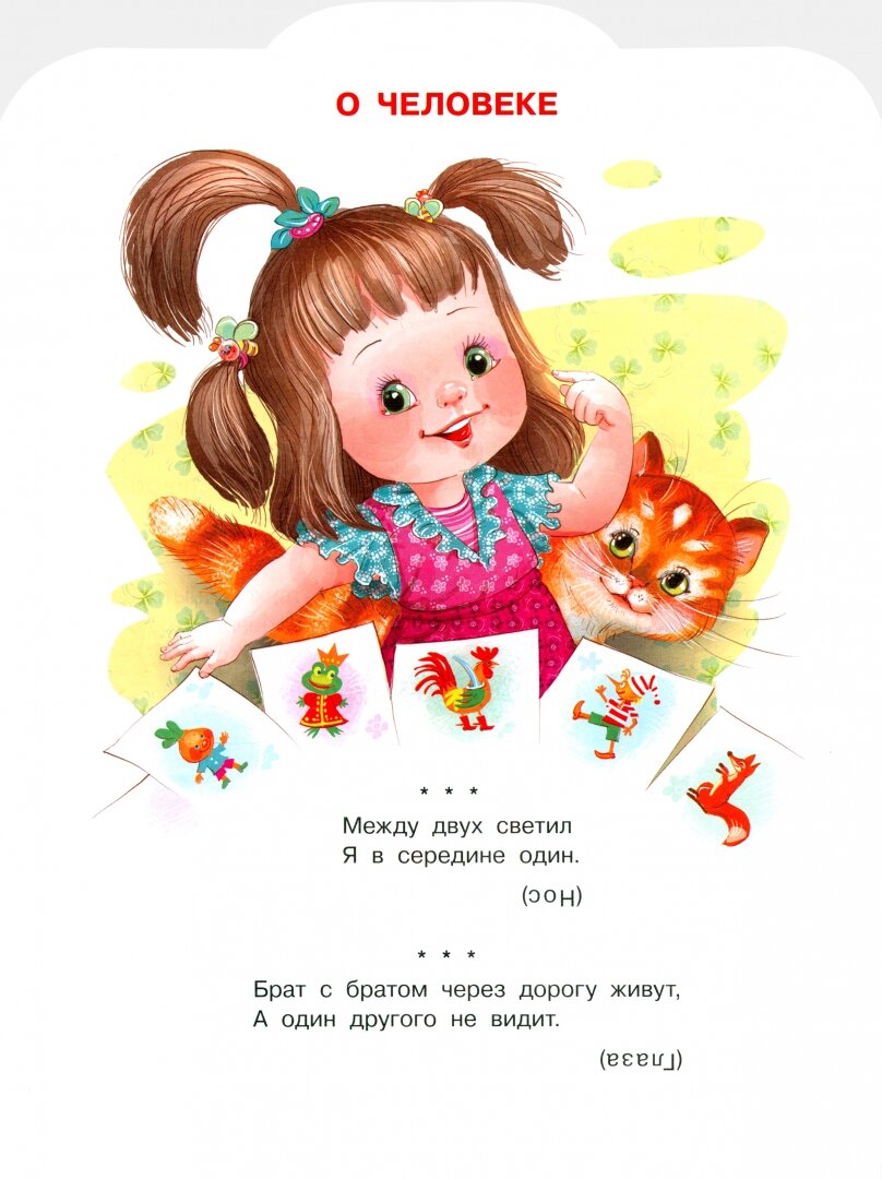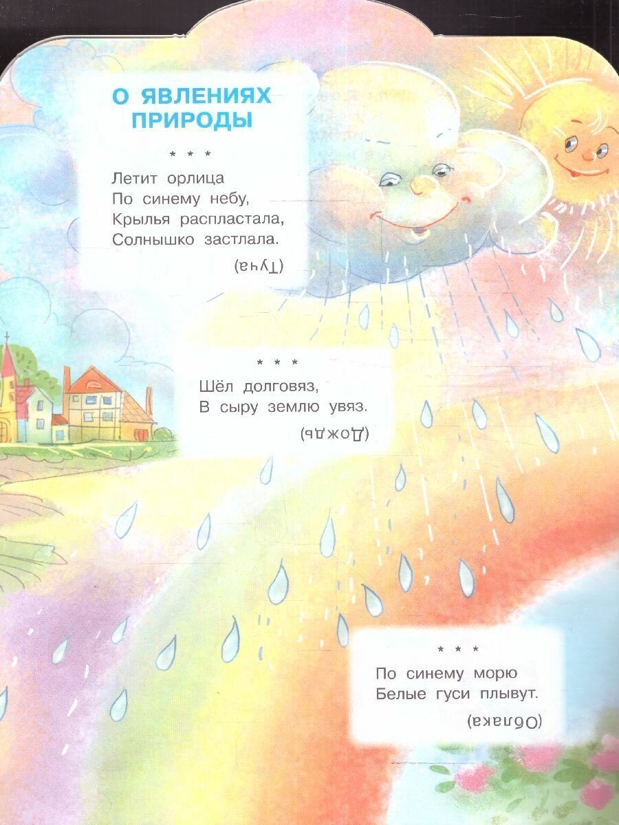 В старые времена загадками могли объяснять явления природы и того, что нас окружает. Часто загадки можно встретить и в сказках: загадками испытывают главного героя. Сейчас загадки - это отличные помощники в развитии малыша: они раскрывают многогранность русского языка, развивают сообразительность и догадливость. В нашу книжку вошли русские народные загадки о животных, о человеке, о растениях, о предметах, о явлениях природы.