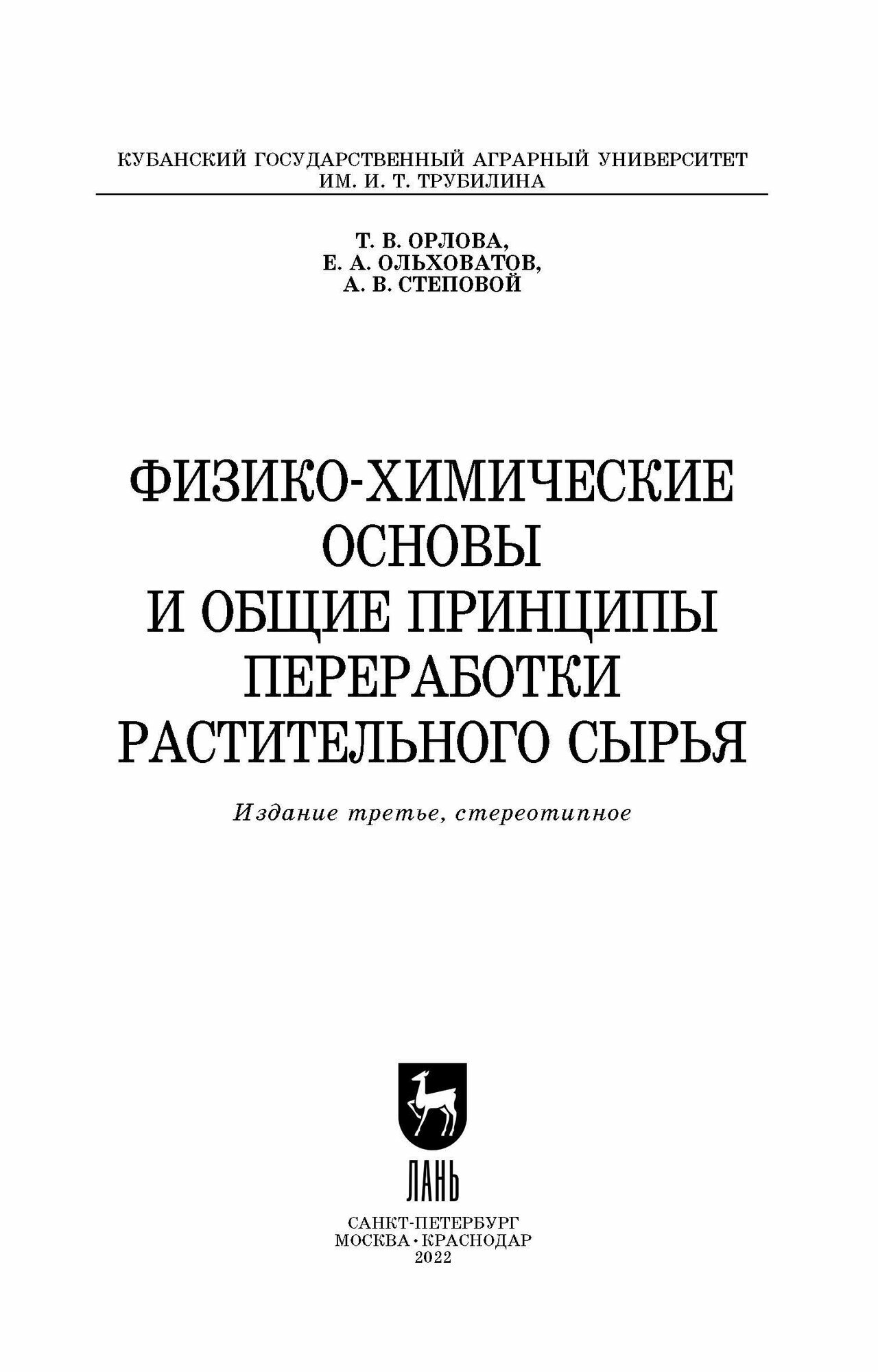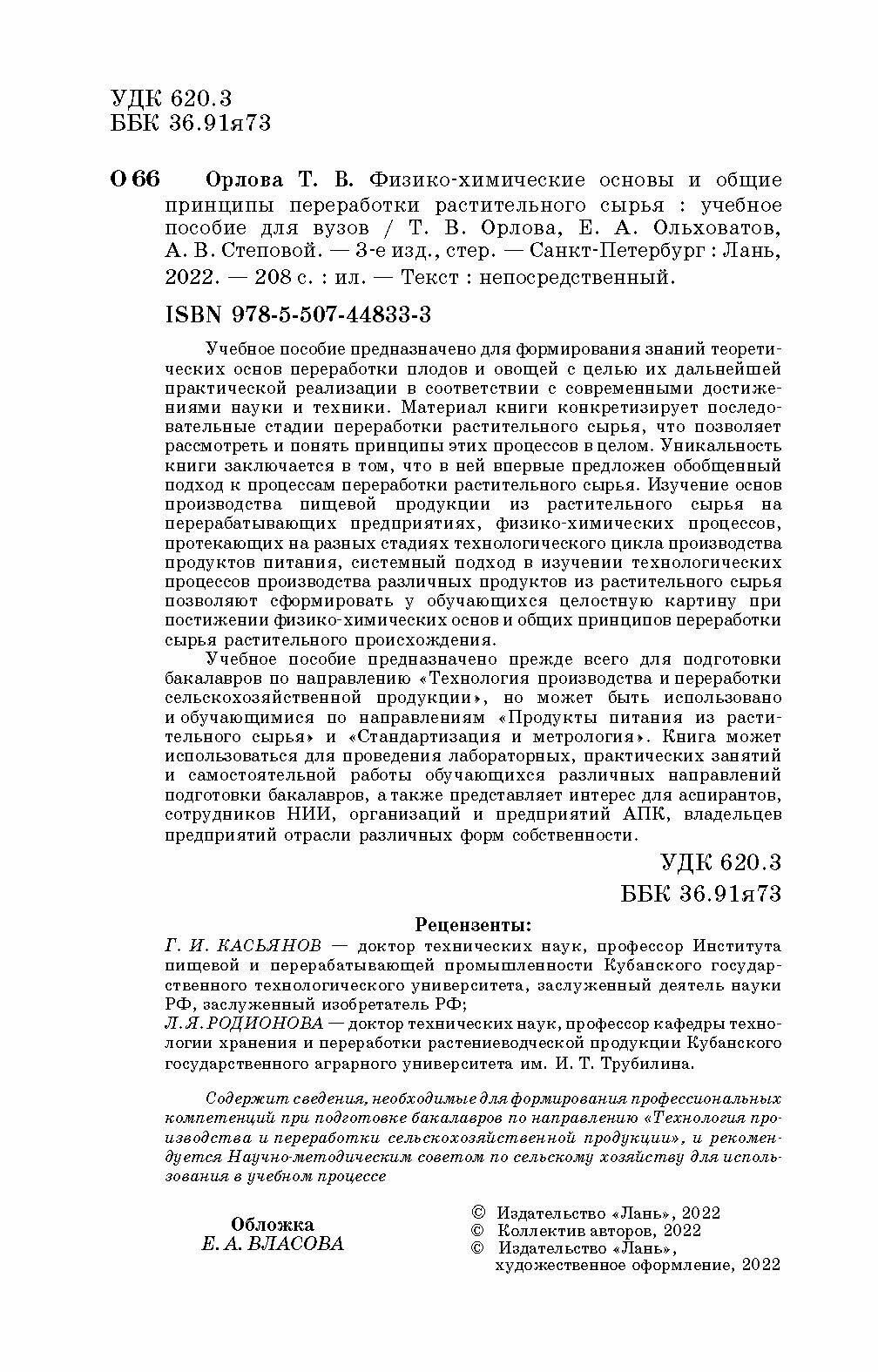 Физико-химические основы и общие принципы переработки растительного сырья. Учебное пособие для вузов (Ольховатов Егор Анатольевич, Степовой Артем Васильевич, Орлова Татьяна Владимировна); Лань, 2022