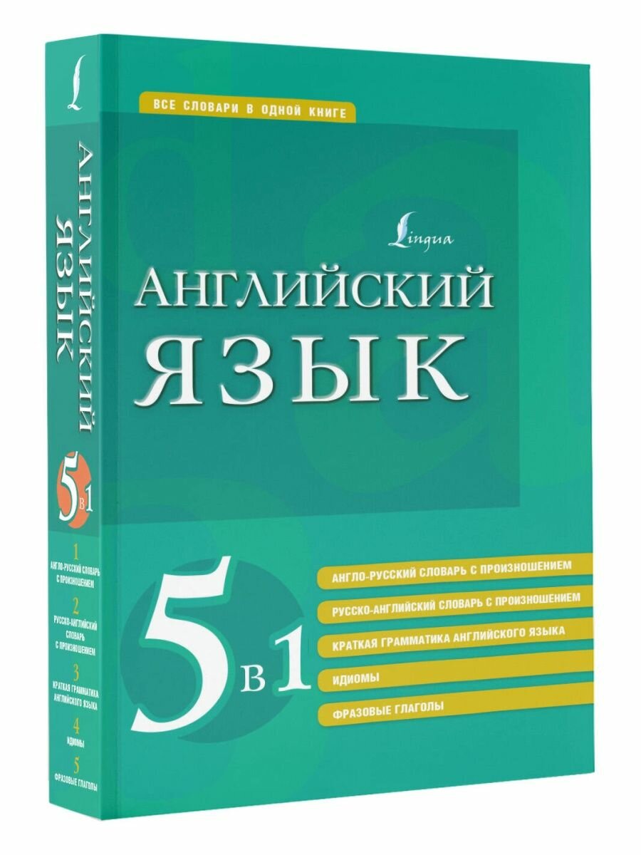 Настоящее издание включает пять основных словарей английского языка: англо-русский и русско-английский словари с произношением, краткая грамматика английского языка, идиомы, фразовые глаголы. Все слова снабжены транскрипцией, написанной русскими буквами, причем в русско-английской части тоже дается транскрипция английских слов.
