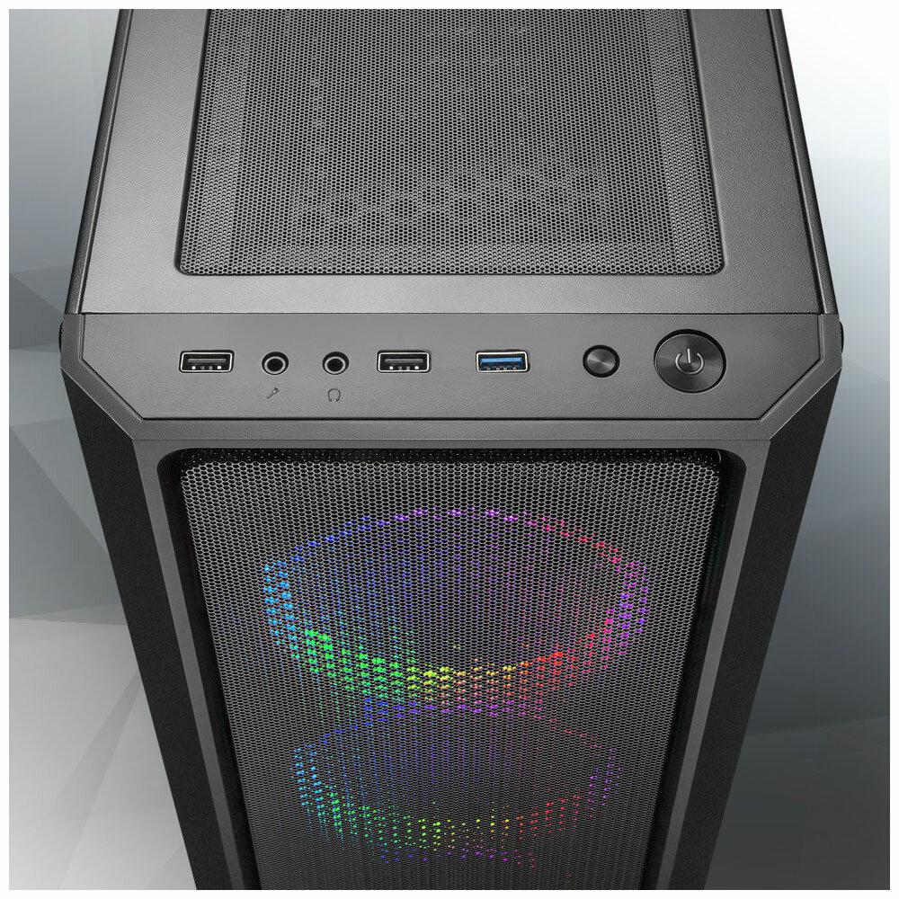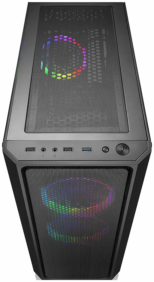 | Прочие особенности и свойства | Вентиляторы с LED RGB, Комплектация (подсветка), 3 фронтальных и один тыловой ARGB вентилятор 120мм. Предустановленный 6-канальный контроллер подсветки |