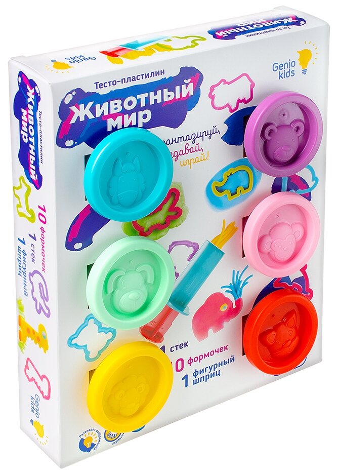 Животные - наши друзья. И учить ребенка ладить с разными формами жизни необходимо с младенчества. Набор для творческих экспериментов "Тесто-пластилин. Животный мир" от белорусского бренда Genio Kids поможет ребенку познакомиться с фауной и выучить названия диких и домашних животных! В набор входит 6 баночек тесто-пластилина, а также необходимые инструменты для игры: стек, шприц и вырубные формочки в виде зверушек. Ребенок с удовольствием будет лепить, составлять композиции из вылепленных зверят. Особенности: