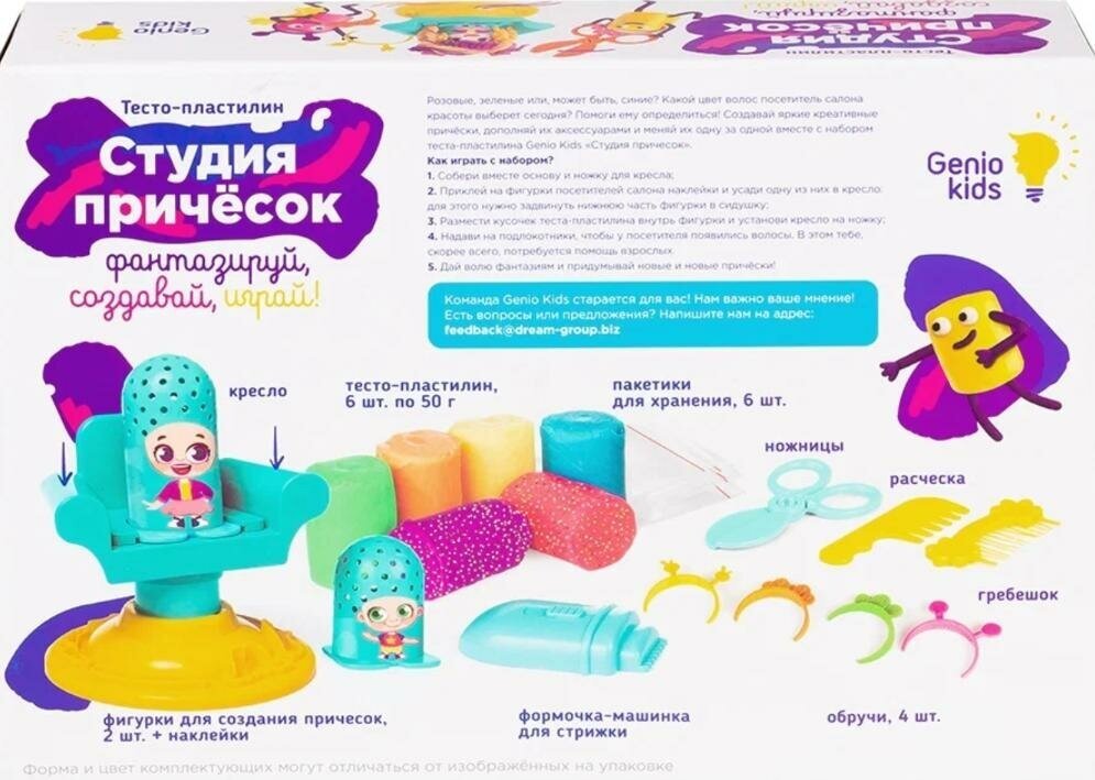 Розовые, зеленые, или, может быть, синие? Какой цвет волос посетитель салона красоты выберет сегодня? Помоги ему определиться вместе с набором для творческих экспериментов "Студия причесок" от Genio Kids! Создавай яркие креативные прически, дополняй аксессуарами, и меняй их одну за одной!