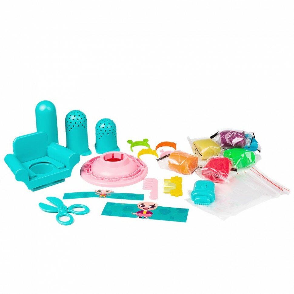 В набор входит специальное кресло для клиента, а также 2 фигурки. Поместив тесто-пластилин в нужное отделение, необходимо надавить на подлокотники (предварительно усадив фигурку в кресло). В тот час у клиента отрастет роскошная яркая шевелюра, с которой можно управиться с помощью ножниц, расчески и гребешка. Особенности: