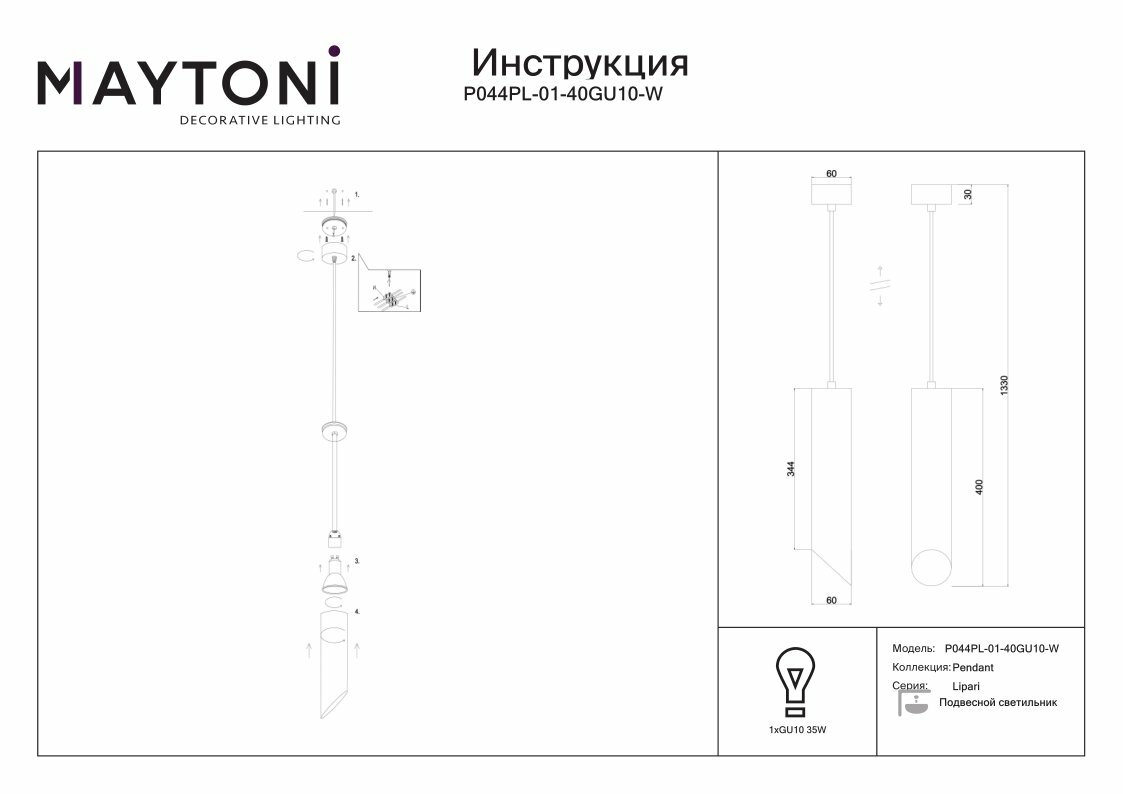 Подвесной светильник Maytoni PENDANT P044PL-01-40GU10-W