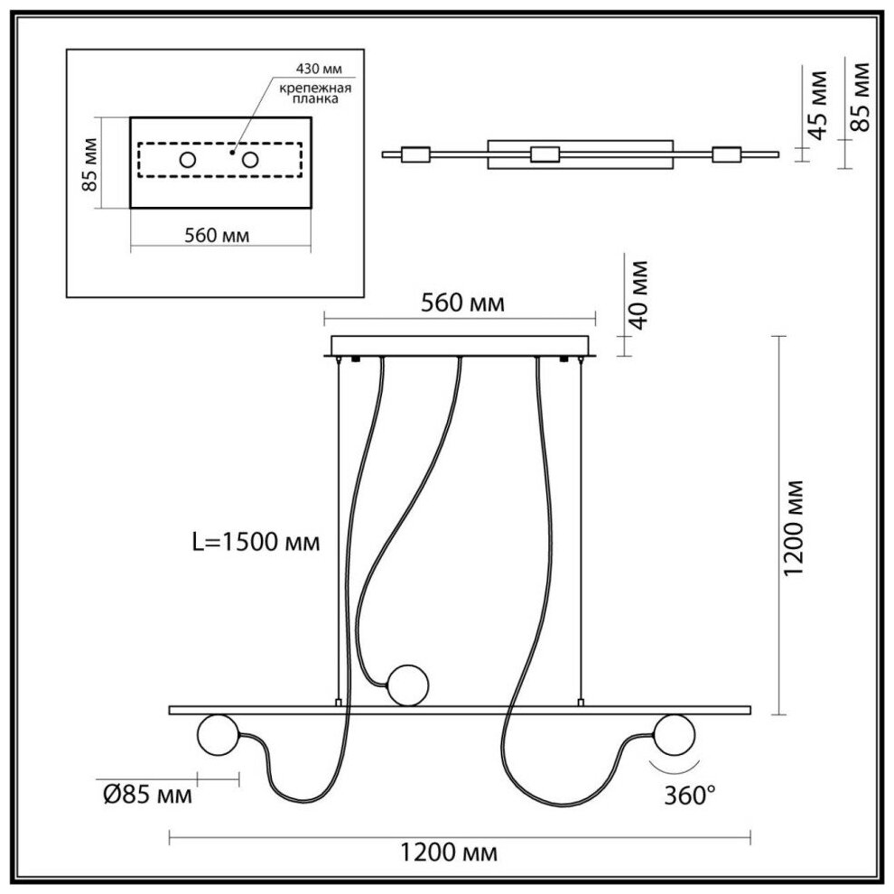 | Длина подвеса, мм | 1500 |
