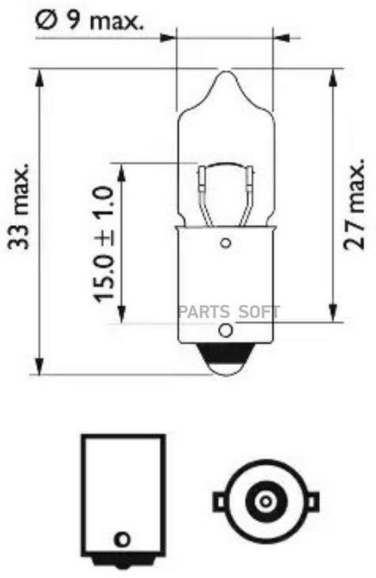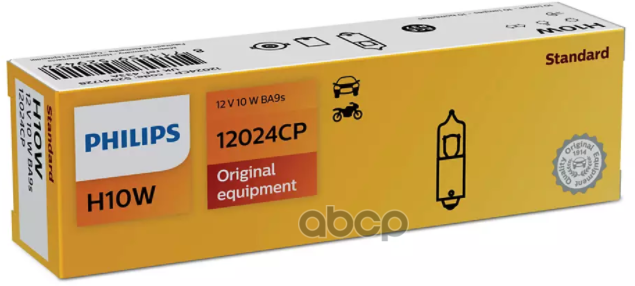 Лампа 24V 10W (стоп) металл. цок. (H10W / BA9s) (PHILIPS) Лампа накаливания автомобильная 12024CP 10W