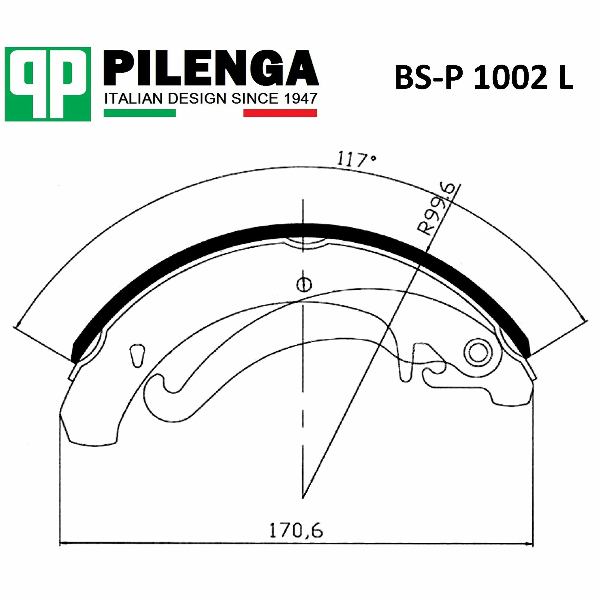 Колодка тормозная ВАЗ-2108-151118 задняя (Pilenga) (4 шт.) со скобами BS-T 1002 L N