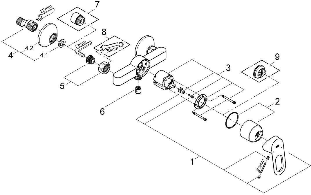 - Смеситель скрытого монтажа Grohe BauLoop 29080000 со скрытой частью 33964000