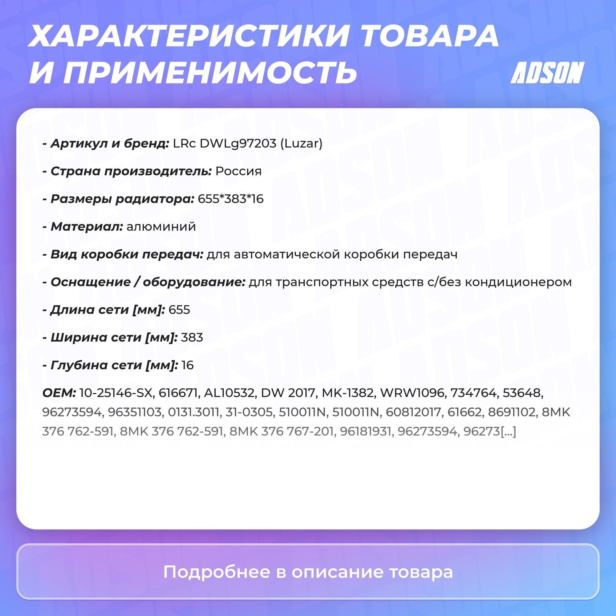 На сегодняшний день товар «Радиатор охлаждения для автомобилей Leganza (97-)/Nubira (99-) АT LUZAR (LRc DWLg97203)» можно купить с кешбеком в 1 магазине: Яндекс.Маркет