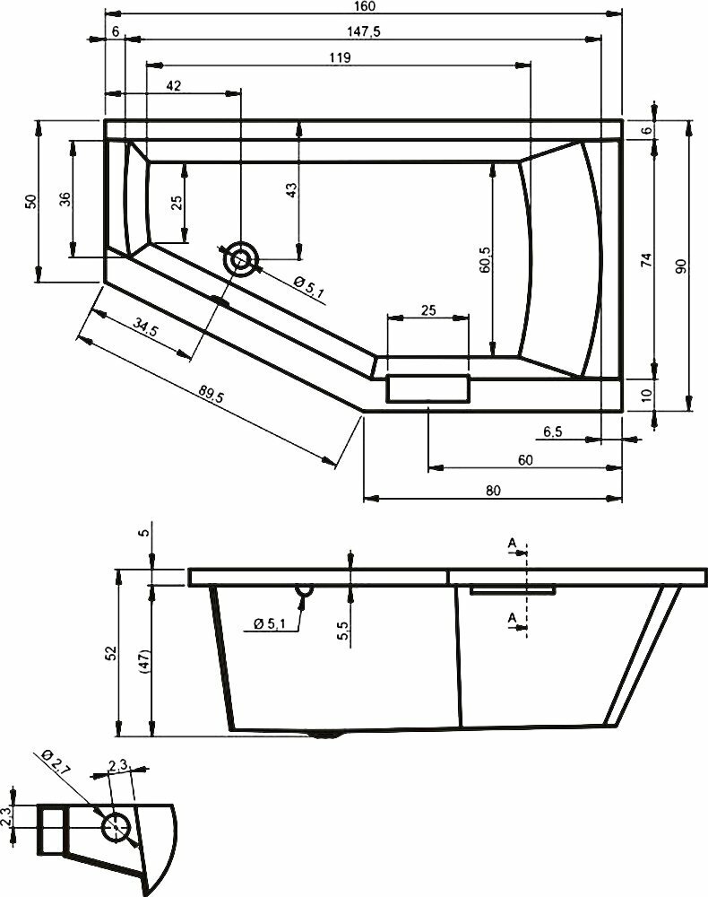| Диаметр выпуска (отверстия для слива) | 51 |