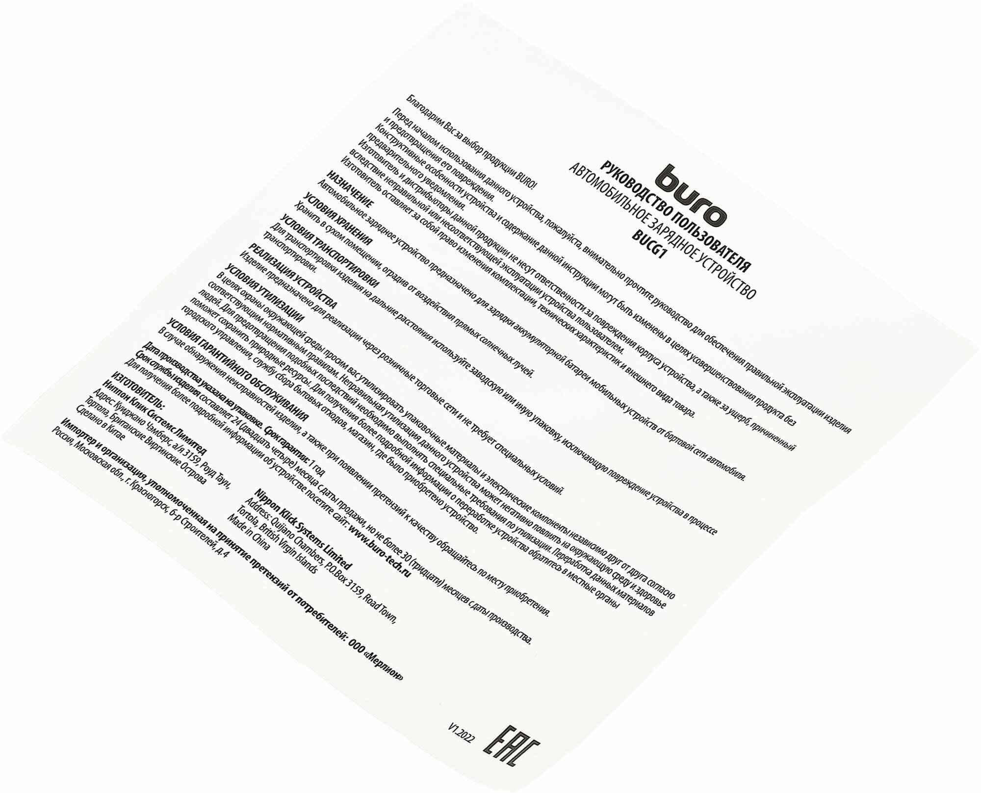 Автомобильные зарядные устройства Buro