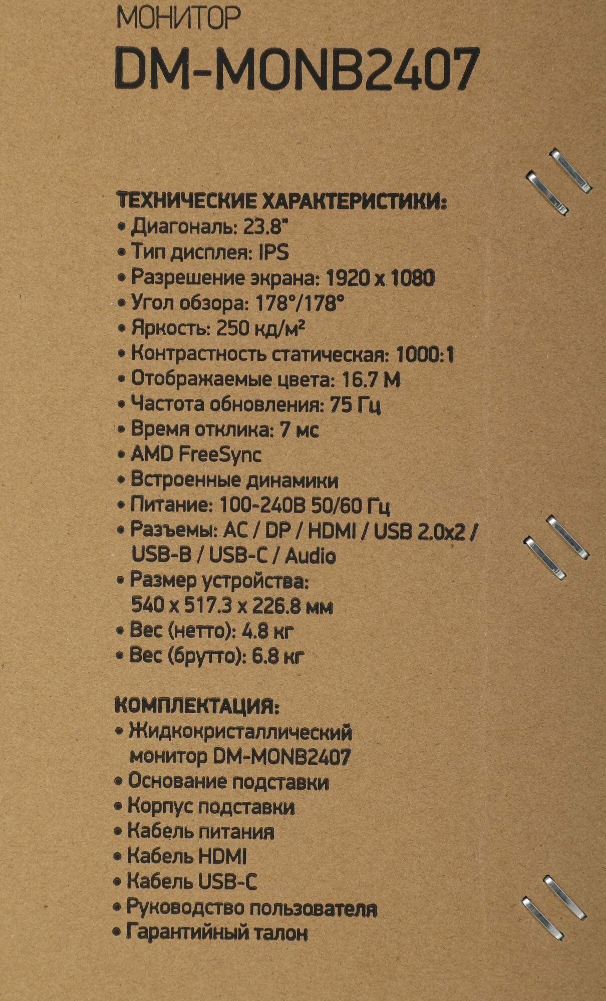 | Экран | 23.8 ", 1920x1080, 16:9, IPS, 75 Гц, 250 кд/м2, GTG 7 мс, AMD FreeSync |