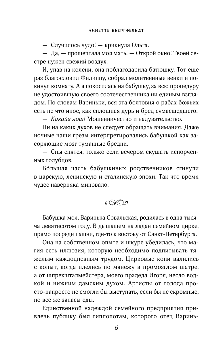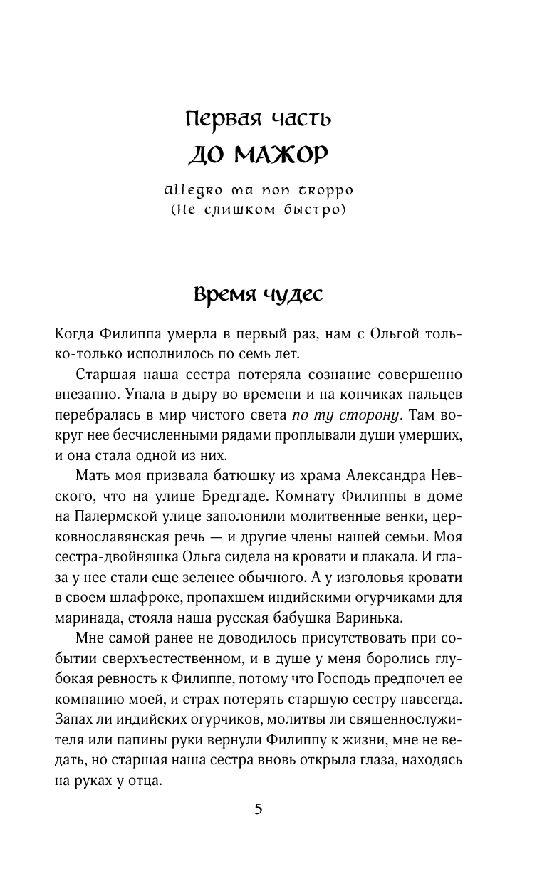 Дочь Ганнибала и Вариньки, по слухам, обладающая экстрасенсорными способностями, влюбляется в укротителя голубей! А его внуки, близнецы, выбирают творческую профессию: Эстер становится художником, а Ольга — оперной дивой. Старшая же сестра близнецов Филиппа озабочена тем, чтобы стать первой женщиной-космонавтом, прежде чем болезнь унесет ее жизнь.