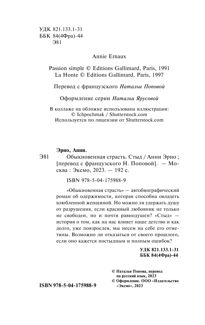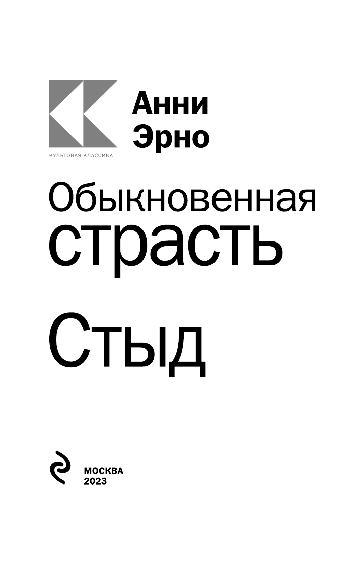 Обыкновенная страсть Стыд (Анни Эрно); Эксмо, Редакция 1, 2023