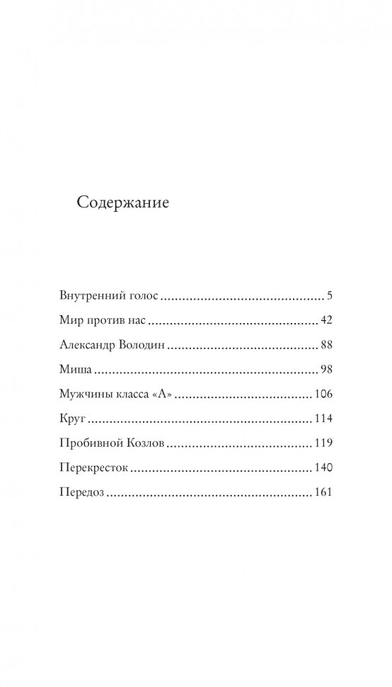 Хороший сборник рассказов одного из любимых писателей. Особенно понравились - \"Мужчины класса А\" ,\"Миша\" и \"Александр Володин.\" Малая проза Виктории Токаревой ценна тем, что в ёмкой форме изложено то, что не каждый автор способен уместить в роман. Без воды, концентрат. Пронзительные и щемящие истории, описанные судьбы людей на развороте страниц заставляют задуматься. Однозначно рекомендую все книги автора.