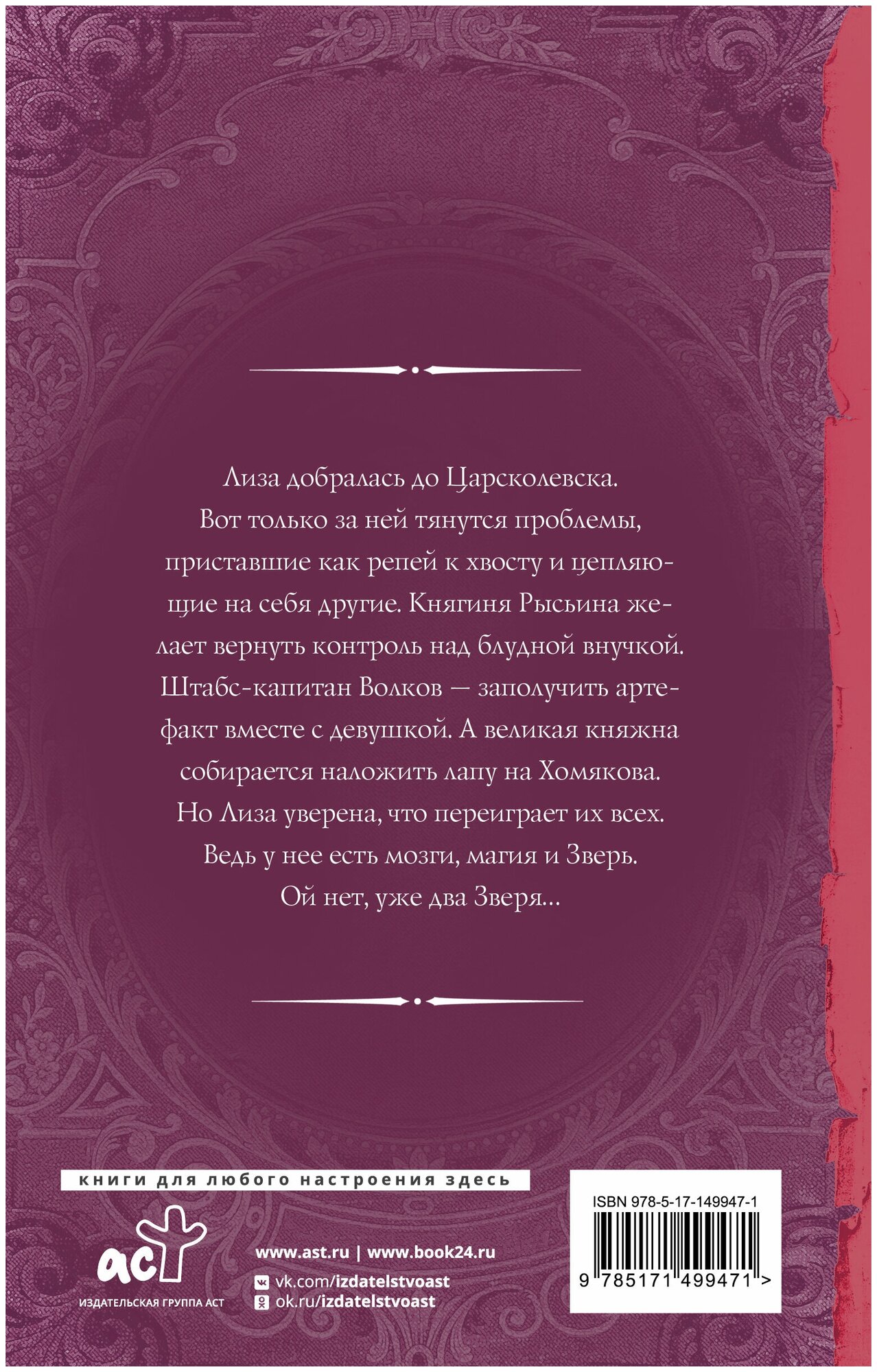 Лиза добралась до Царсколевска. Вот только за ней тянутся проблемы, приставшие как репей к хвосту и цепляющие на себя другие. Княгиня Рысьина желает вернуть контроль над блудной внучкой. Штабс-капитан Волков - заполучить артефакт вместе с девушкой. А великая княжна собирается наложить лапу на Хомякова.
