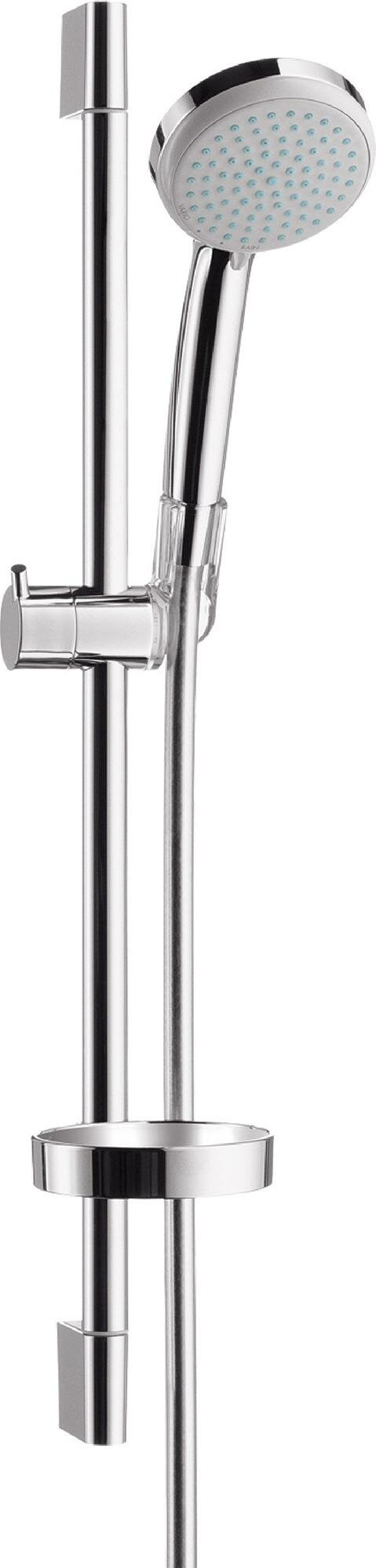 Hansgrohe Crometta 85 Vario - душевой гарнитур, состоящий из шланга, штанги с мыльницей и лейки. Струйные форсунки лейки снабжены эластичными силиконовыми вставками, благодаря чему загрязнения и известь удаляются одним движением руки. Технология AirPower обогащает капли воды воздухом, что делает их объемнее, легче и мягче. Чтобы переключить тип струи теперь достаточно чуть повернуть душевой диск.