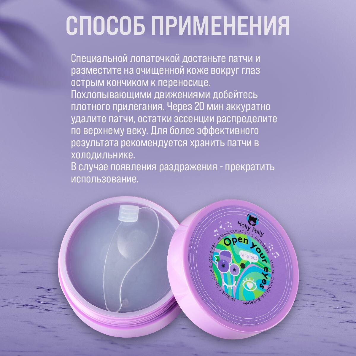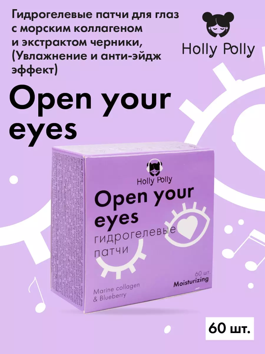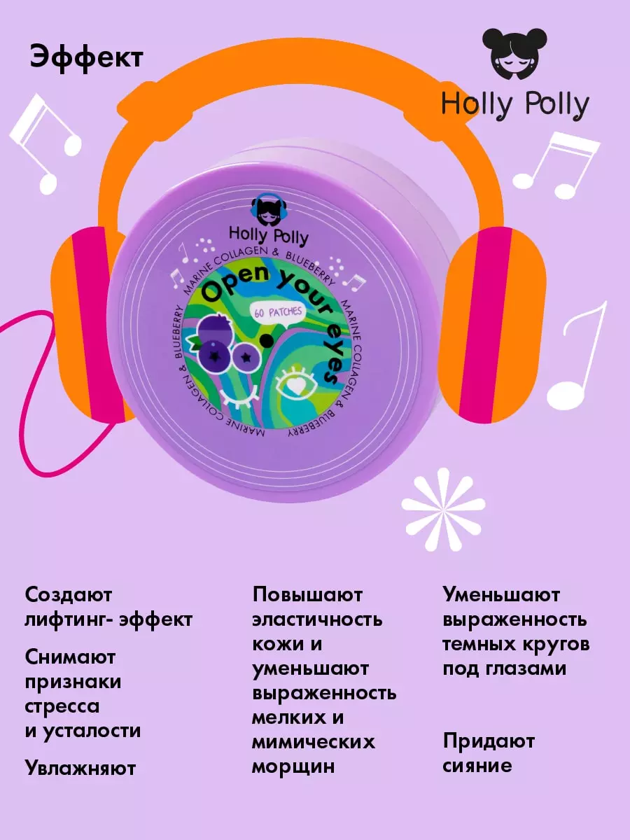 Holly Polly Music Collection Open Your Eyes - Гидрогелевые патчи для глаз с Морским Коллагеном и экстрактом Черники (Увлажнение и анти-эйдж эффект) 60 шт (ЭХ99989429482)