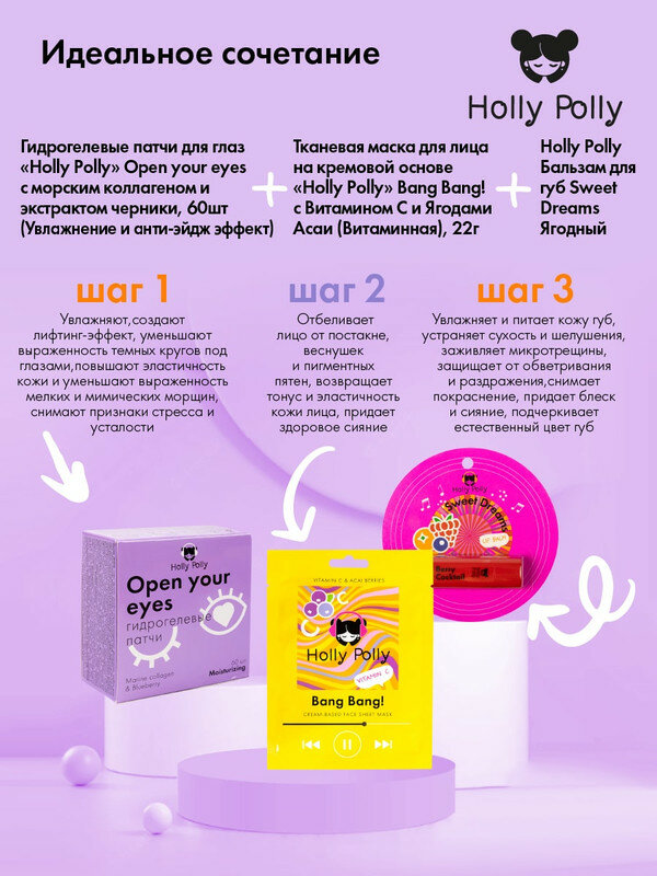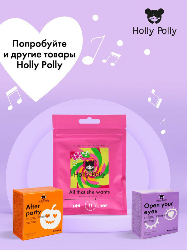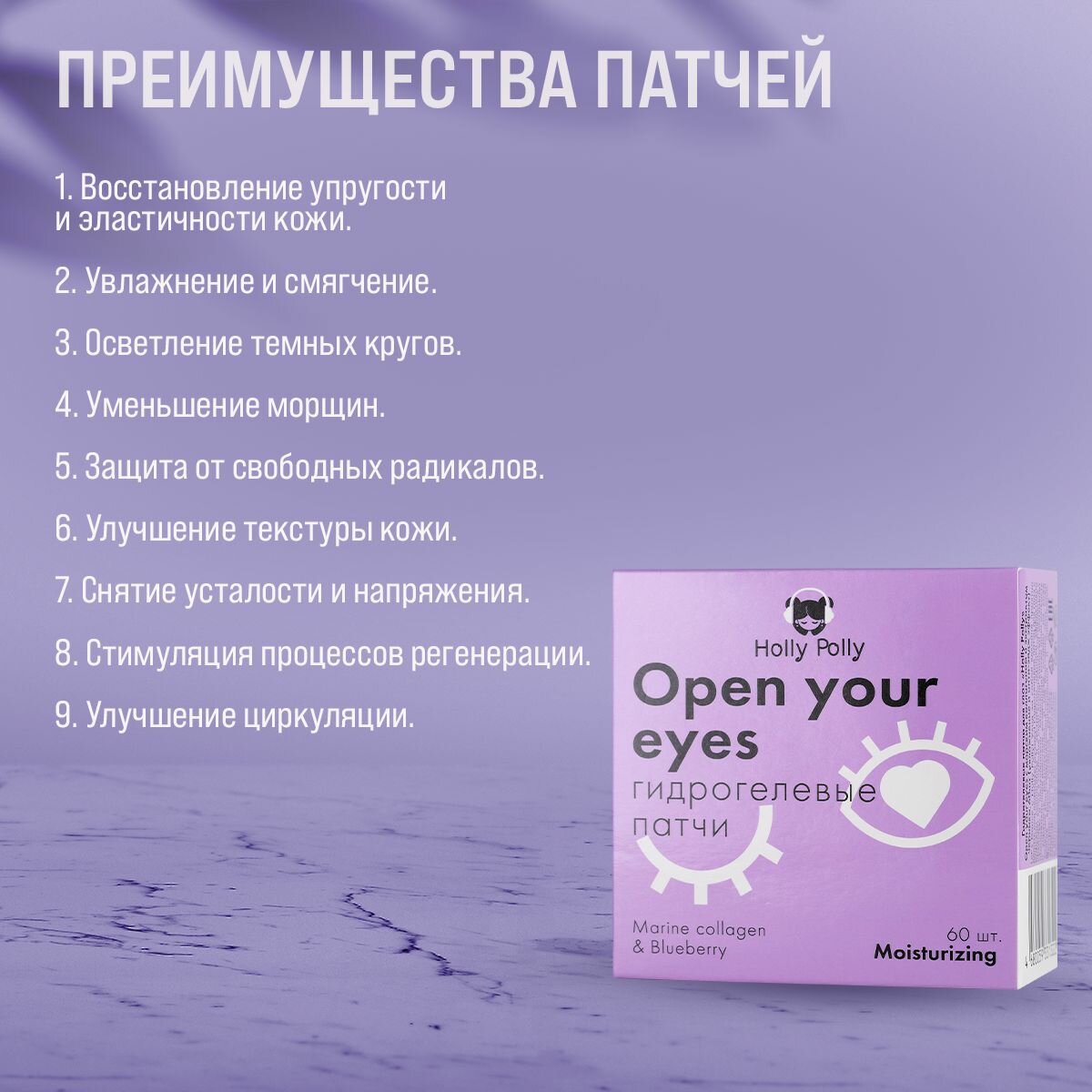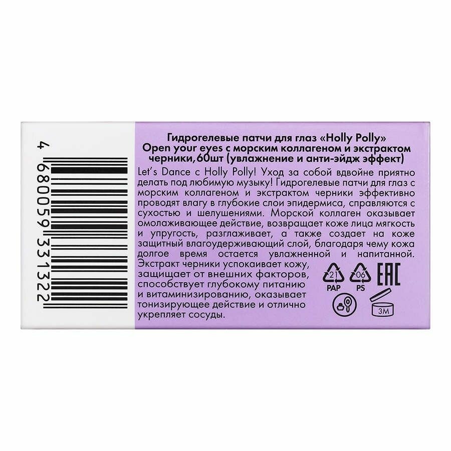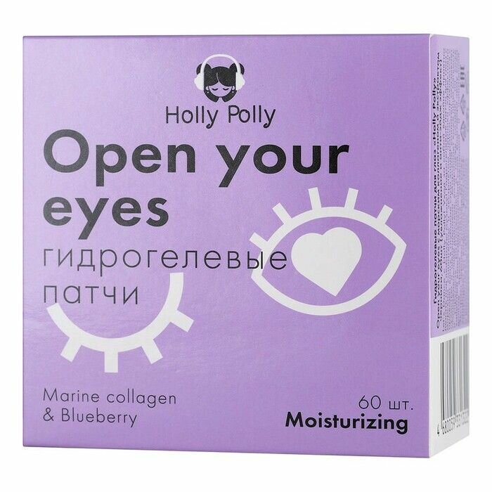 Holly Polly Music Collection Open Your Eyes - Гидрогелевые патчи для глаз с Морским Коллагеном и экстрактом Черники (Увлажнение и анти-эйдж эффект) 60 шт (ЭХ99989429482)