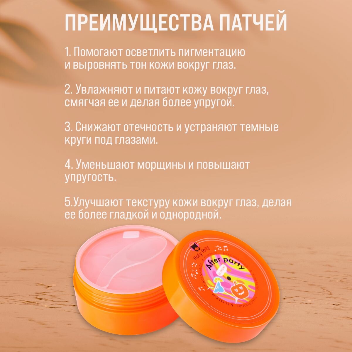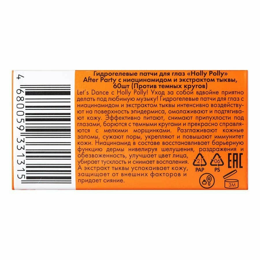 Holly Polly Music Collection After Party - Гидрогелевые патчи для глаз с Ниацинамидом и экстрактом Тыквы (Против темных кругов) 60 шт (ЭХ99989429481)