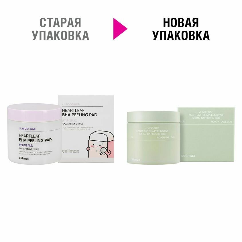 Celimax Отшелушивающие диски для лица с BHA-кислотами Ji Woo Gae Heartleaf BHA Peeling Pad 125 мл (8809463992615)