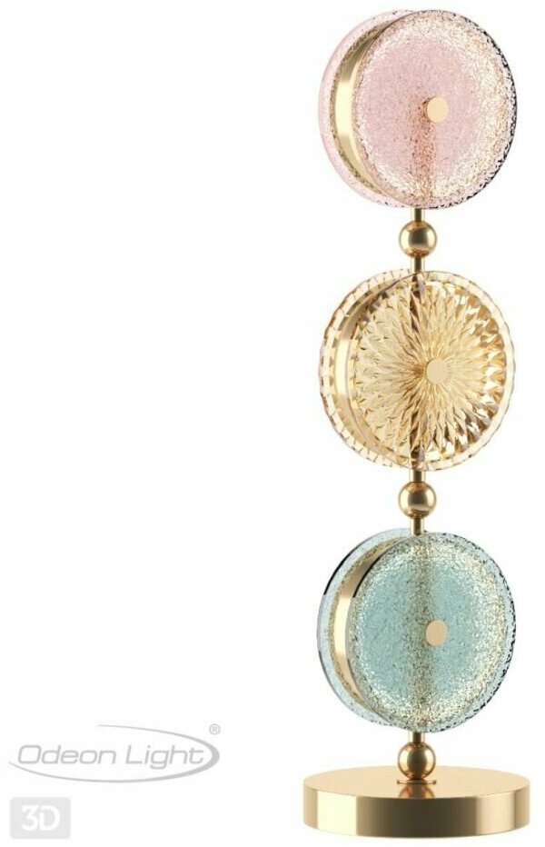 Декоративная настольная лампа Odeon Light серии L-VISION. Оживит ваш интерьер. Размеры 0x4.8x61 cm. Диаметр 17 cm Параметры пылевлагозащиты IP — 20. Плафон стеклянный разноцветный, а материал/цвет арматуры металл/хром. Имеются встроенные светодиодные лампы, рассчитанные на весь срок службы светильника. Площадь освещения охватывает 3 m². Идеально подходит для спальни. Страна происхождения бренда — ИТАЛИЯ. Вес с упаковкой 4.2 kg