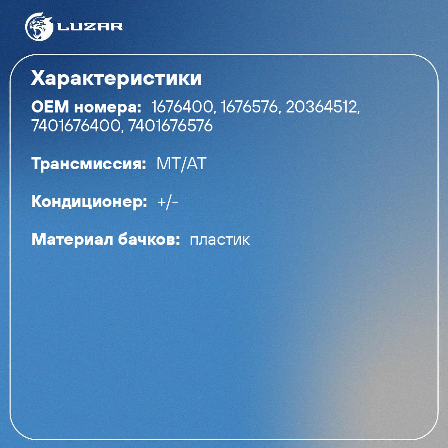 Запчасти системы охлаждения LUZAR