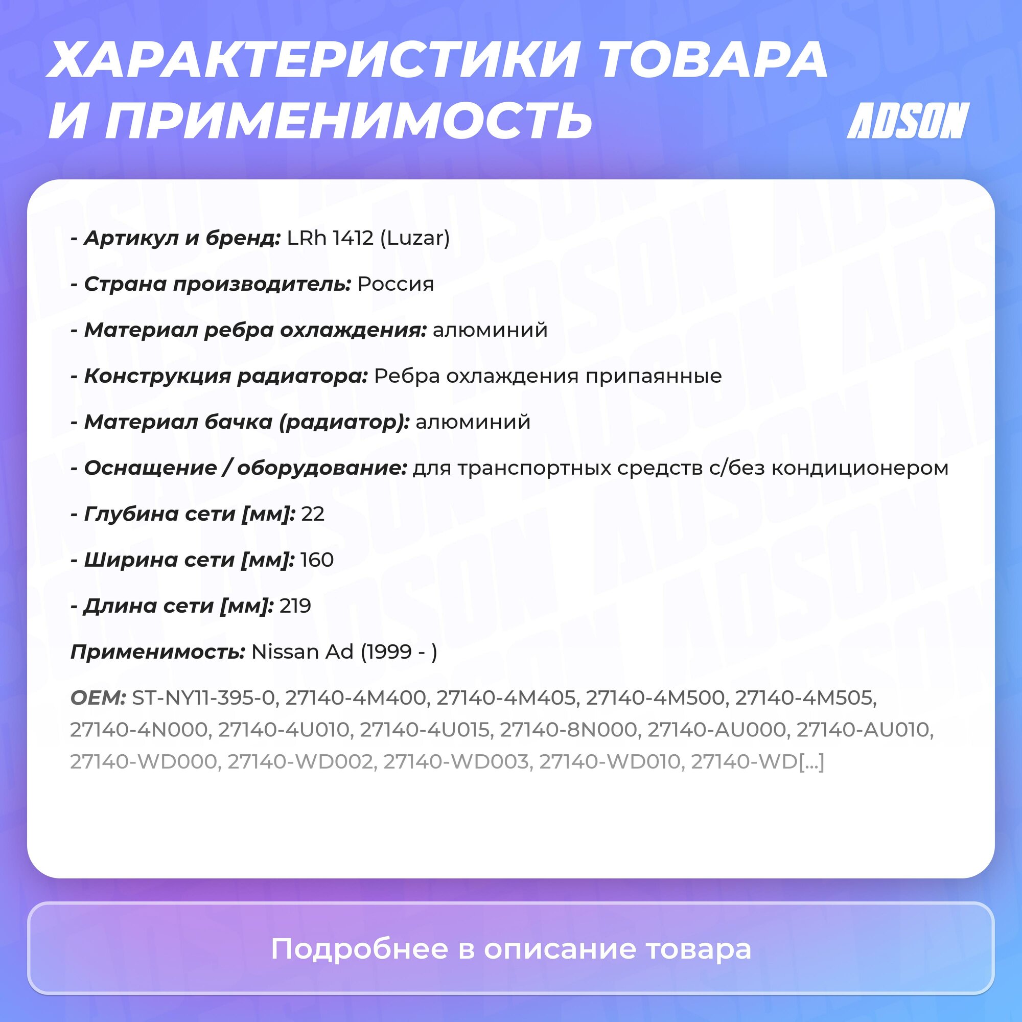 Сервис сравнения цен СкидкаГИД предлагает сравнить цены на товар «Радиатор отопителя для автомобилей AD (99-)/Wingroad II (99-) LUZAR (LRh 1412)»