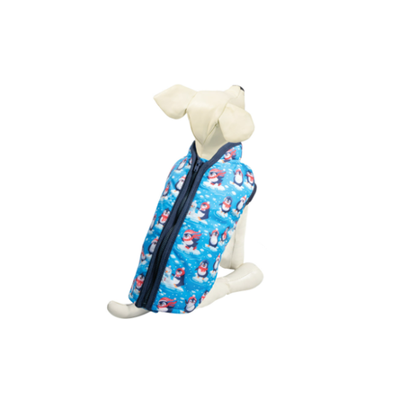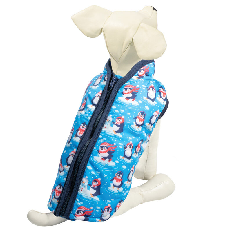 Утепленная попона "Праздник" с флисовой подкладкой и воротничком для комфортных прогулок даже в самую ненастную погоду. Попона украшена оригинальным принтом. Застегивается при помощи молнии на спине.