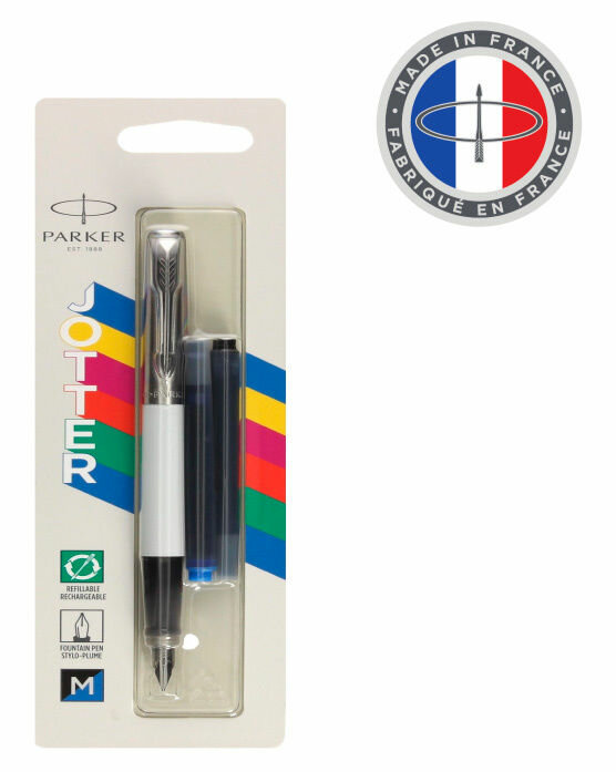 Ручка перьевая "Parker Jotter Orig White" с пластиковым корпусом. Линия письма средняя. Произведено во Франции.