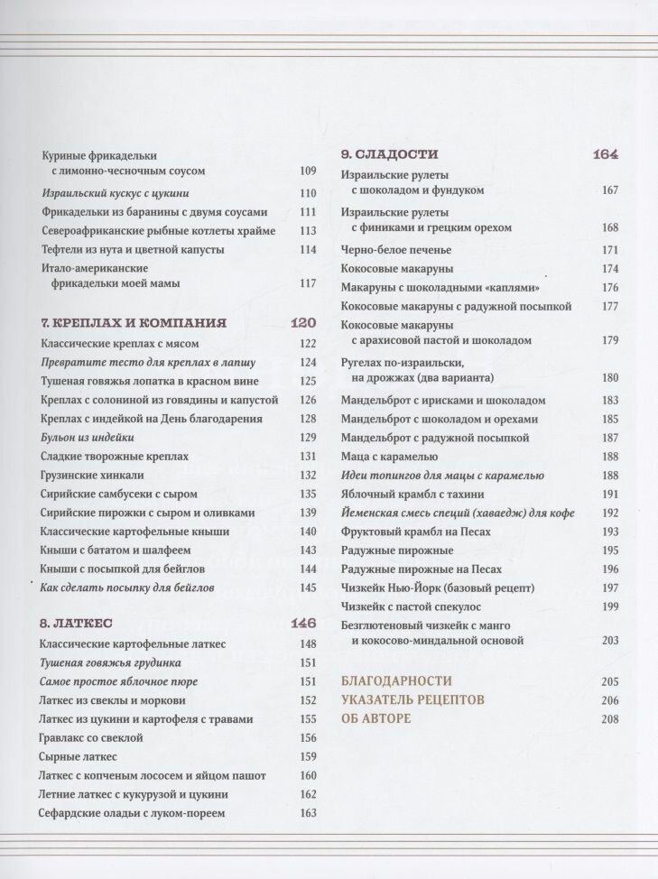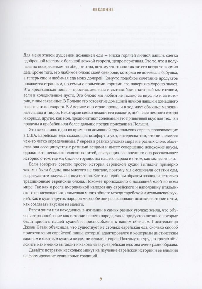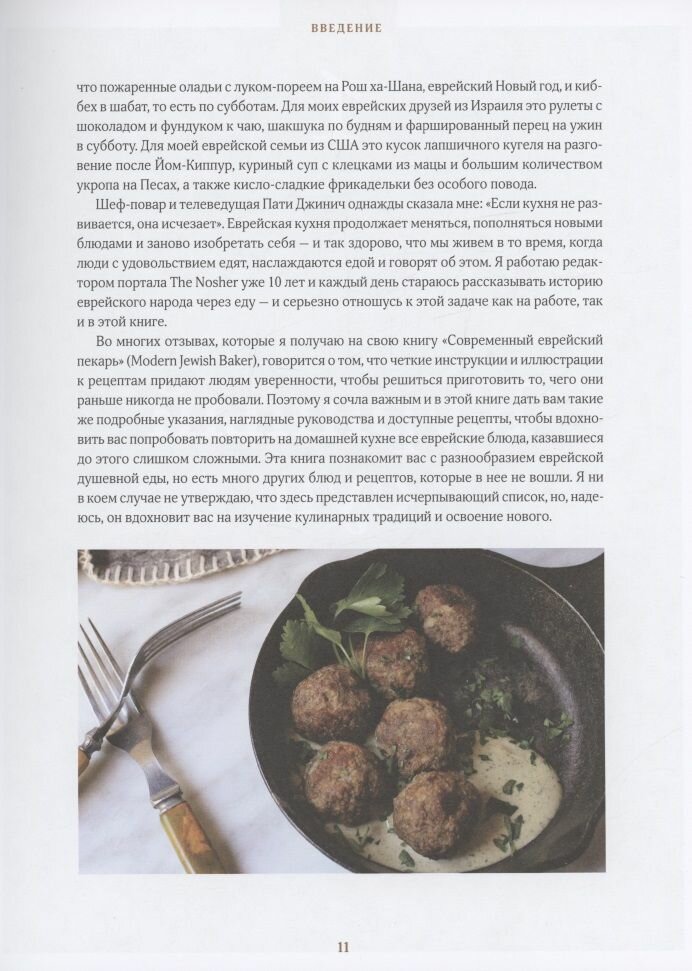 Для каждого из нас еда, создающая комфорт, может означать что-то особенное, но неизменно она вызывает ассоциации с запахами, звуками и воспоминаниями, связанными с пребыванием дома, на кухне. Для моих еврейских друзей из Сирии это джибн со шпинатом на завтрак в будний день, горячие, только что пожаренные оладьи с луком-пореем на Рош ха-Шана, еврейский Новый год, и киббех в шабат, то есть по субботам. Для моих еврейских друзей из Израиля это рулеты с шоколадом и фундуком к чаю, шакшука по будням и фаршированный перец на ужин в субботу. Для моей еврейской семьи из США это кусок лапшичного кугеля на разговение после Йом-Киппур, куриный суп с клецками из мацы и большим количеством укропа на Песах, а также кисло-сладкие фрикадельки без особого повода. Шеф-повар и телеведущая Пати Джинич однажды сказала мне: «Если кухня не развивается, она исчезает». Еврейская кухня продолжает меняться, пополняться новыми блюдами и заново изобретать себя — и так здорово, что мы живем в то время, когда люди с удовольствием едят, наслаждаются едой и говорят об этом. Я работаю редактором портала The Nosher уже 10 лет и каждый день стараюсь рассказывать историю еврейского народа через еду — и серьезно отношусь к этой задаче как на работе, так и в этой книге. (Шеннон Сарна)