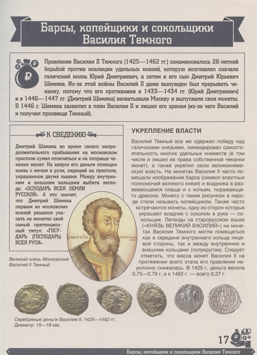 Информация сопровождается красочными иллюстрациями, которые не только наглядно покажут все многообразие описываемых денежных знаков, но и дадут возможность по-новому взглянуть на многовековую историю человечества.