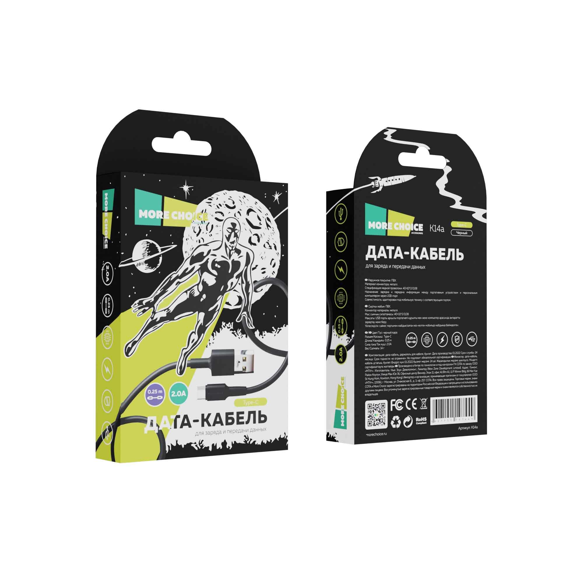 Дата-кабель More choice K14a 2A Type-C Black USB 0.25m (K14A2ATYPECBLACK025)