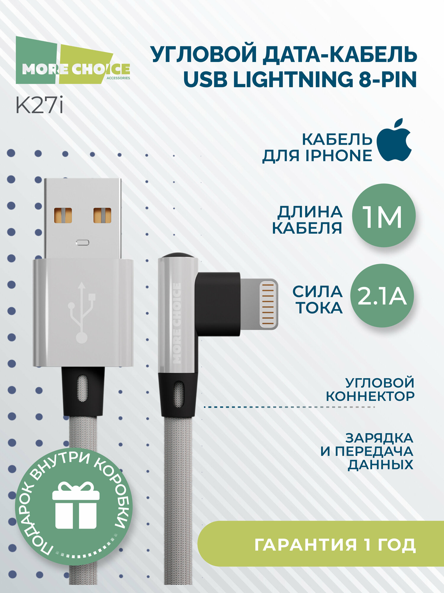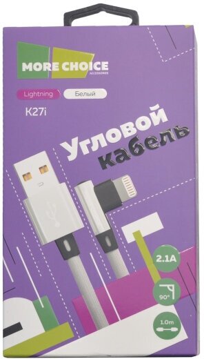 Дата-кабель More choice K27i White USB 2.1A для Lightning 8-pin нейлон 1м (K27IWHITE)