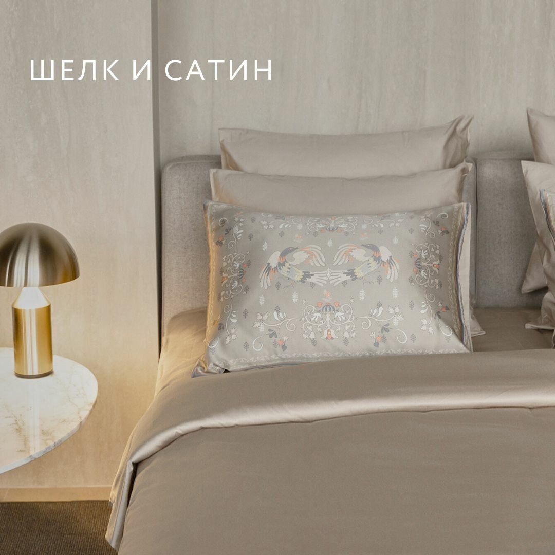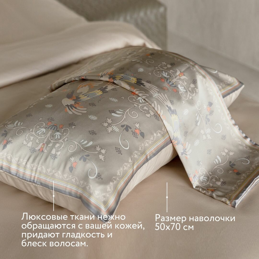 Наволочка Mollen Сказки. Мезенская роспись в песочно-бежевом шелк и сатин (05.02.03.04)