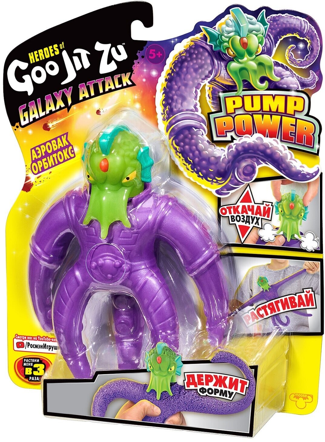Тянущаяся фигурка Аэровак Орбитокс ТМ Гуджитсу приятна на ощупь, растягивается в 3 раза. Фигурка высотой 16,5 см наполнена пластиковыми гранулами. У Аэровак Орбитокса есть функция вакуумного насоса. Игрушка изготовлена из полимерных материалов (ТПР, АБС, ПВХ, ПЭ) с элементами из металла. Товар сертифицирован и безопасен для детей. Упаковка: блистер (19,5 х 5 х 24 см).