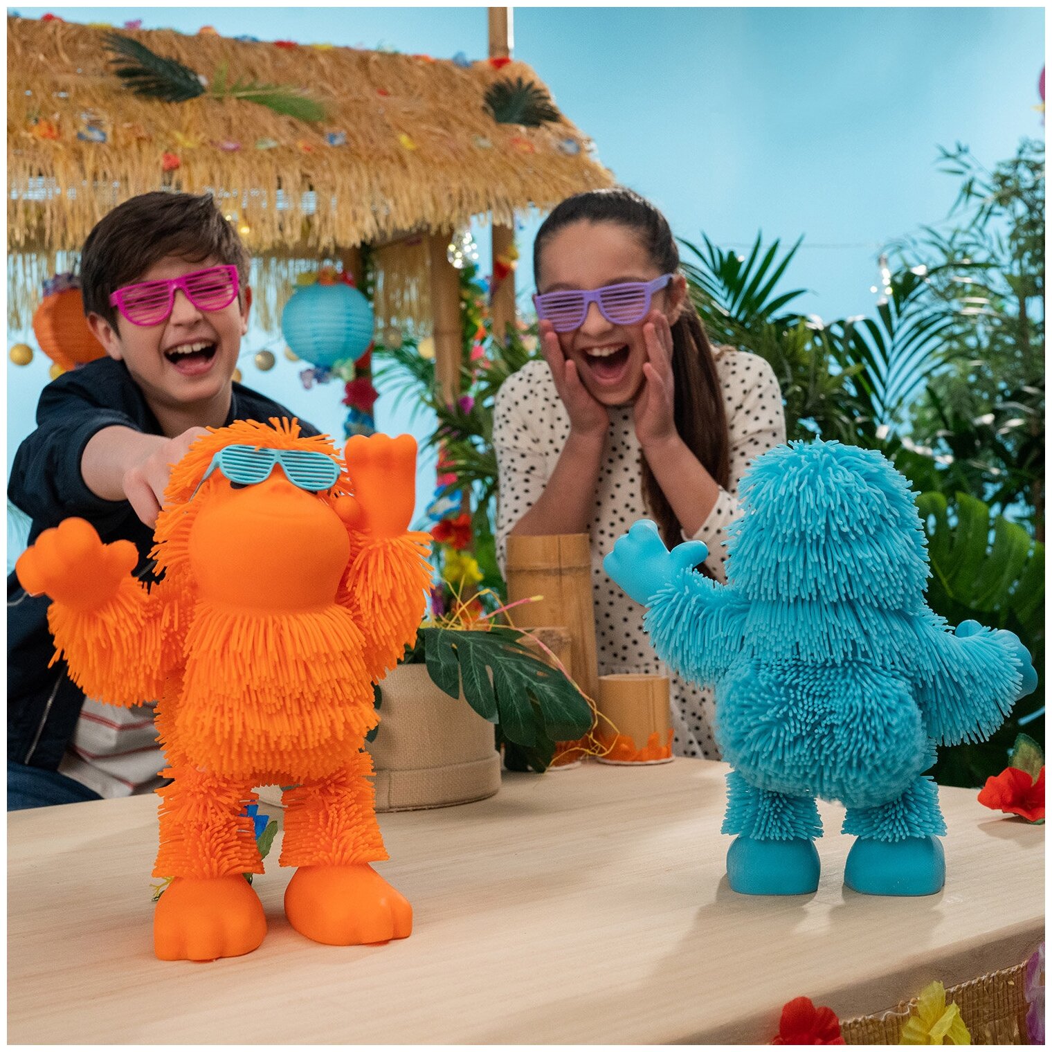 Орангутан Тан-Тан начинает танцевать и забавно трясти бедрами прямо в такт музыке при нажатии на ногу. В комплект входят две пары модных очков - для игрушки и ребенка. Игрушка представлена в трех разных цветах. В коллекции Джигли Петс семь уникальных персонажей. Каждый ребенок сможет найти своего Джигли друга.