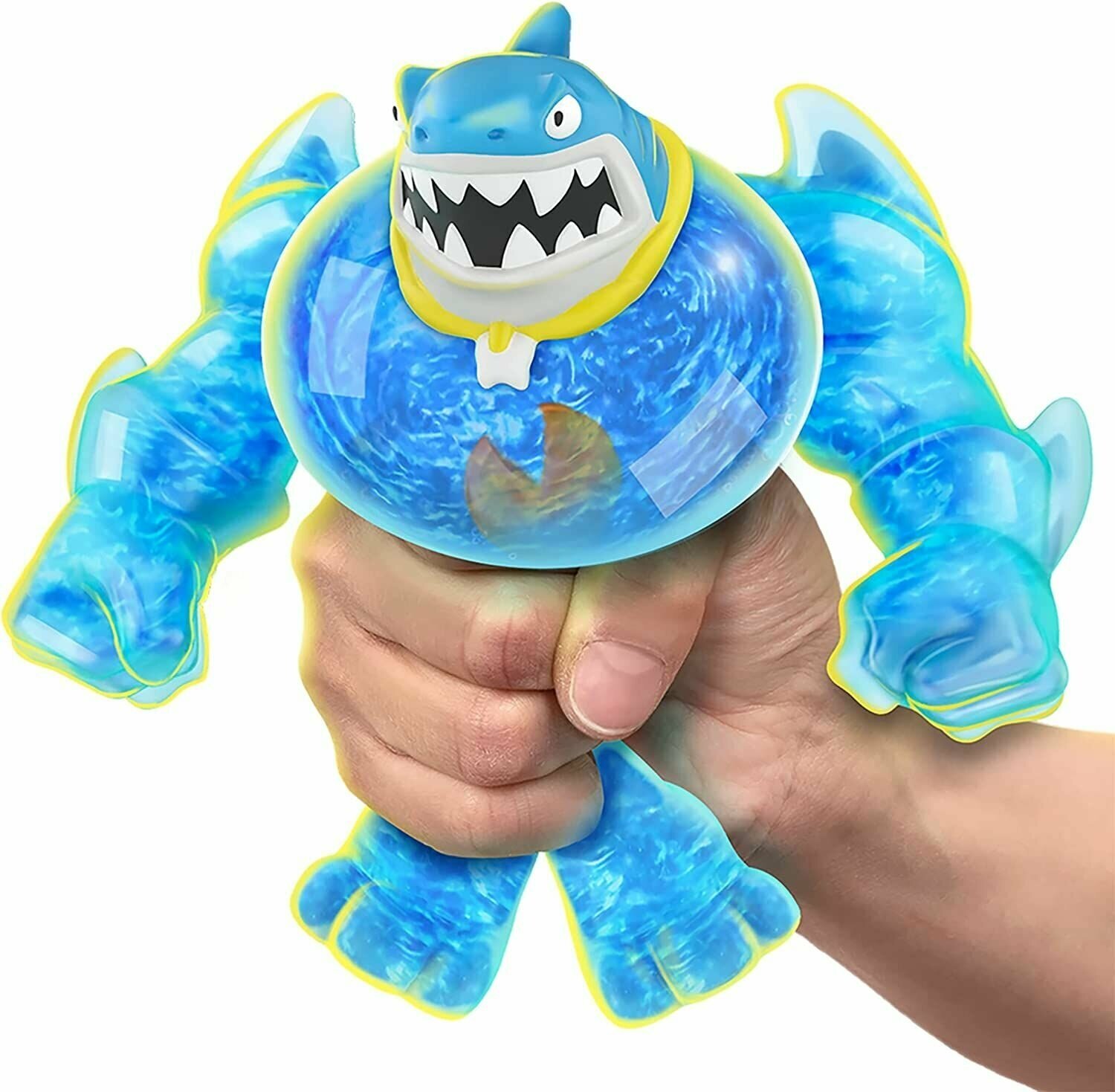 Тянущаяся фигурка Гуджитсу Траш Гу Шифтерс приятна на ощупь, растягивается в 3 раза. Игрушка высотой 12 см со съемной одеждой наполнена жидкостью и имеет ядро, которое окрашивает наполнитель в переливающийся голубой цвет. Состав: ТПР, ПВХ, пластик (АБС), слюда, полимерные материалы, вода. Товар сертифицирован и безопасен для детского использования. Упаковка: блистер (16,4 х 5,5 х 25 см).