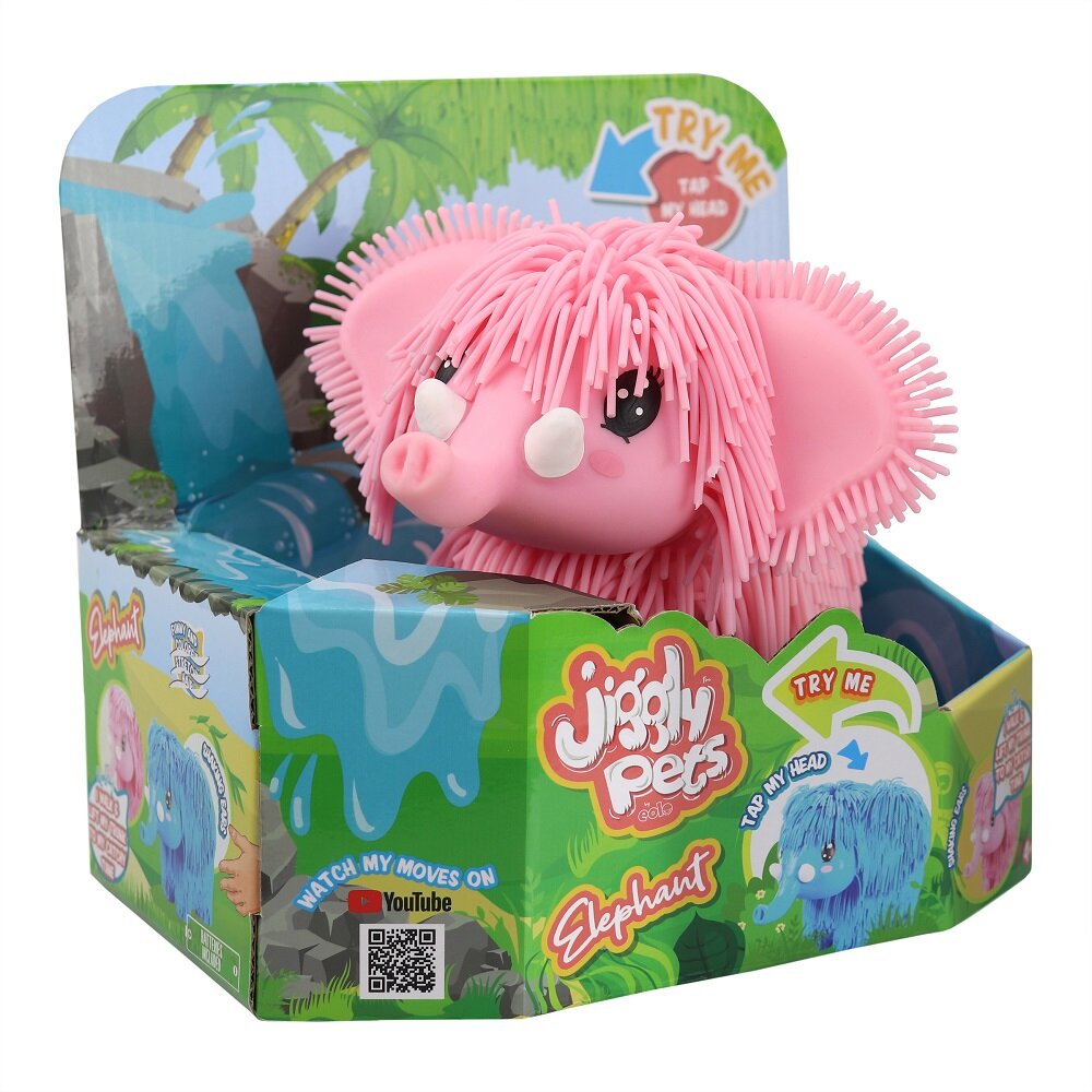 Мамонтенок Джигли Петс очень милый, его так и хочется потрогать! При нажатии на голову он начинает смешно ходить, поднимая хобот и покачиваясь в такт заводной музыке. Игрушка доступна в двух цветах. В коллекции Джигли Петс семь уникальных персонажей. Каждый ребенок сможет найти своего Джигли друга.