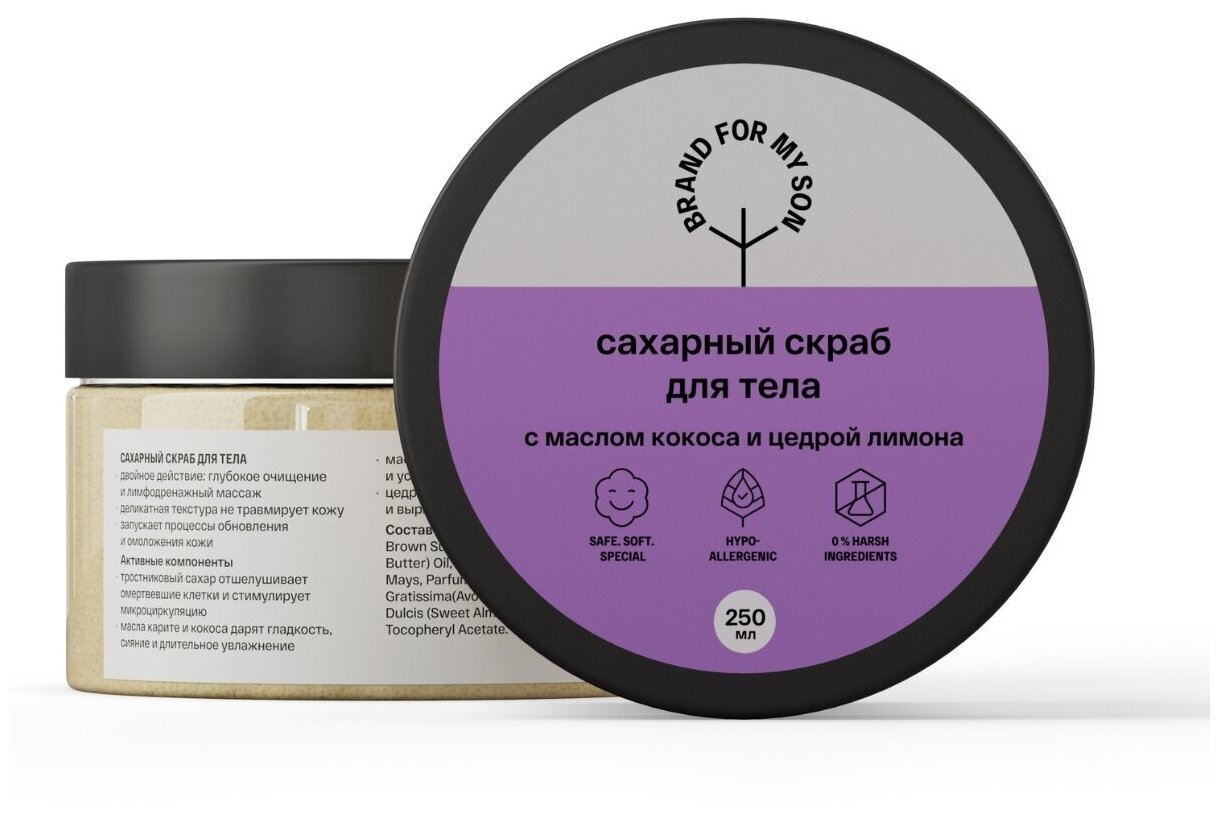 Brand For My Son Сахарный скраб для тела с маслом кокоса и цедрой лимона 250 мл FP014