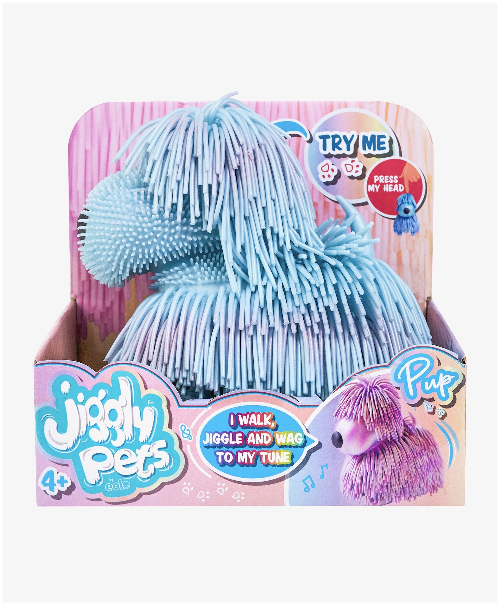 Щенка Пап так и хочется погладить. При нажатии на его голову он начинает весело двигаться, вилять хвостиком, лаять под музыку. Его перламутровая шерсть ярко переливается в движении. Щенок Пап представлен в двух цветах. В коллекции Джигли Петс семь уникальных персонажей. Каждый ребенок сможет найти своего Джигли друга.