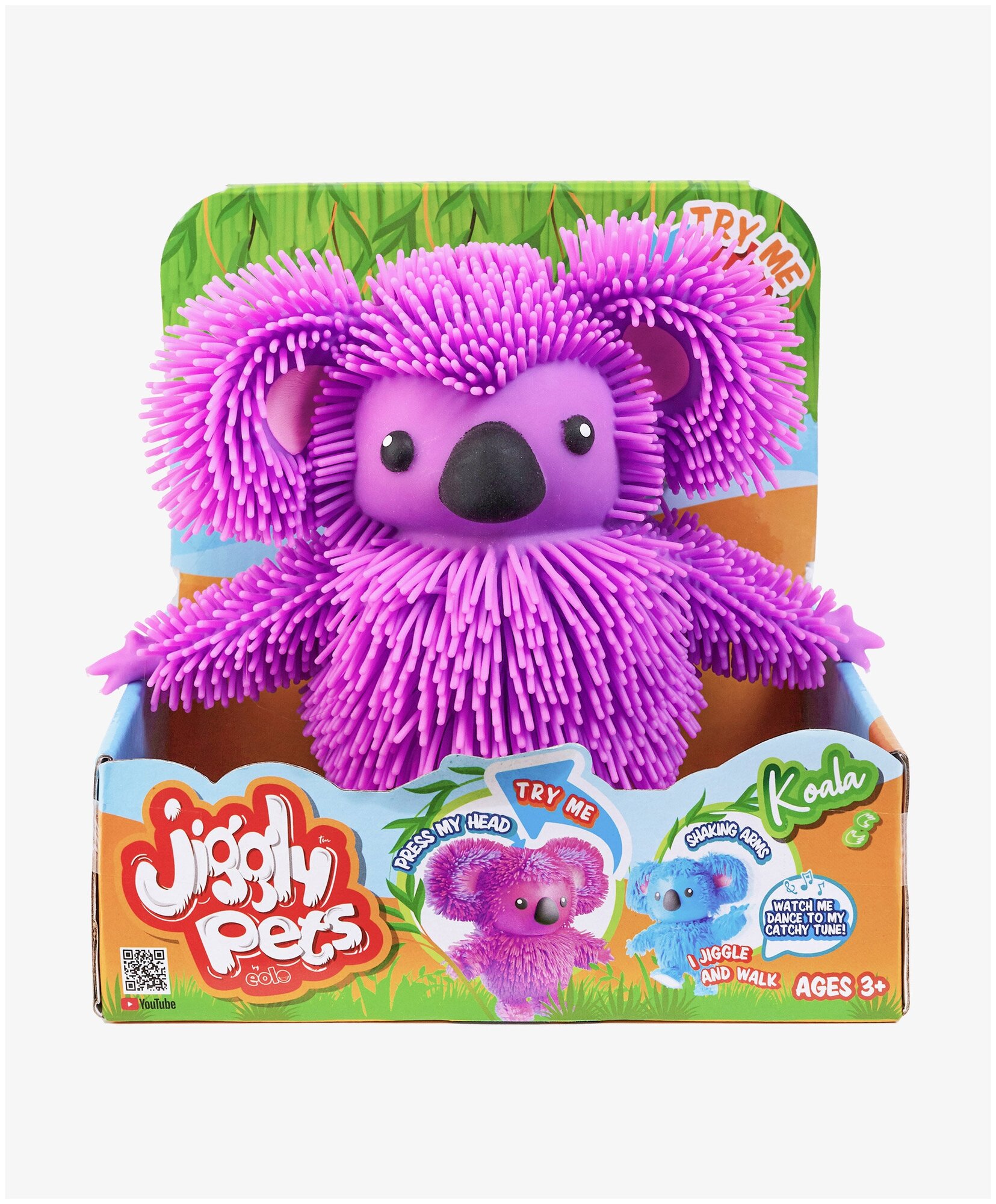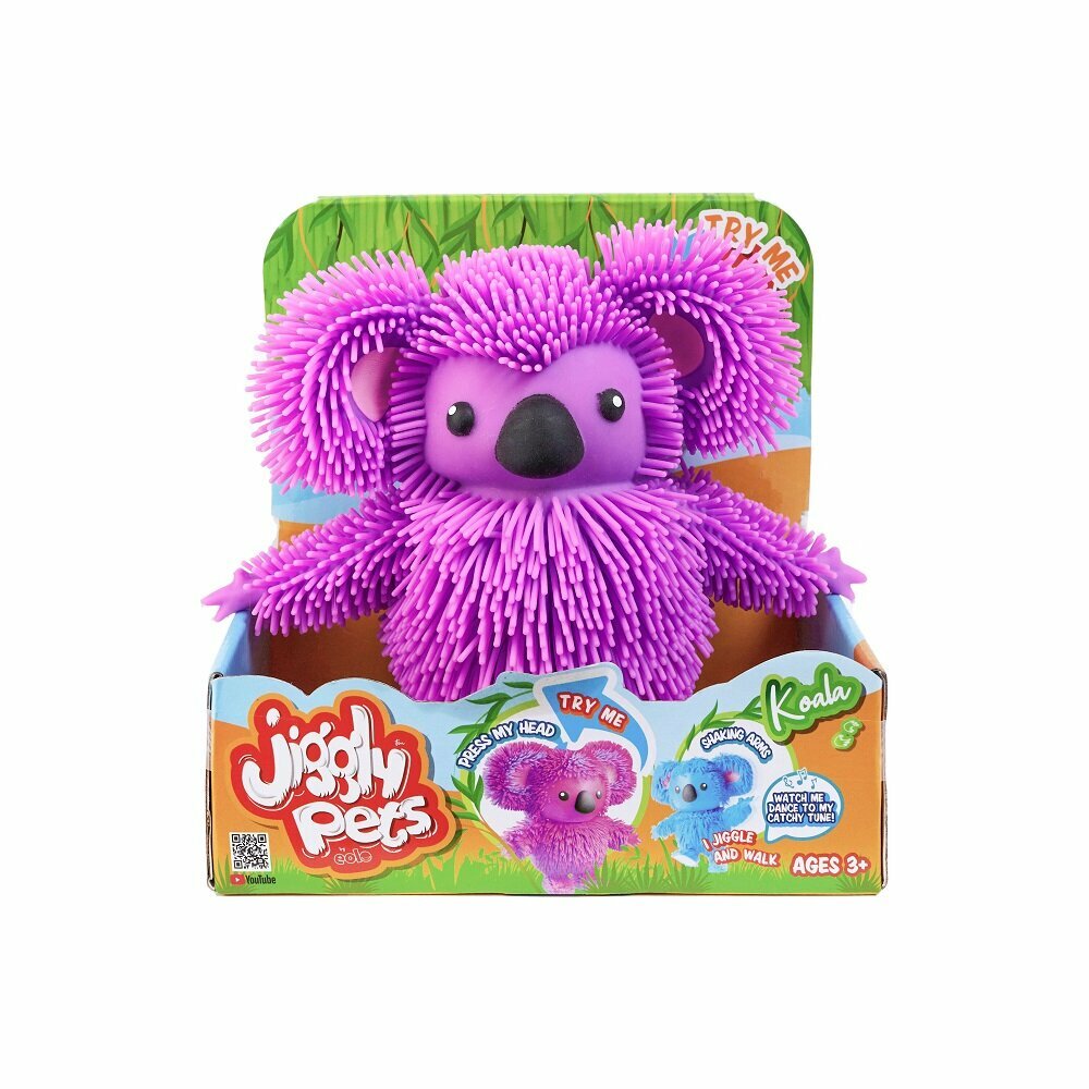 Коала Джигли Петс очаровательная и веселая. При нажатии на голову она начинает ходить и очень смешно трясти руками под задорную музыку! Коала представлена в двух цветах. В коллекции Джигли Петс семь уникальных персонажей. Каждый ребенок сможет найти своего Джигли друга.
