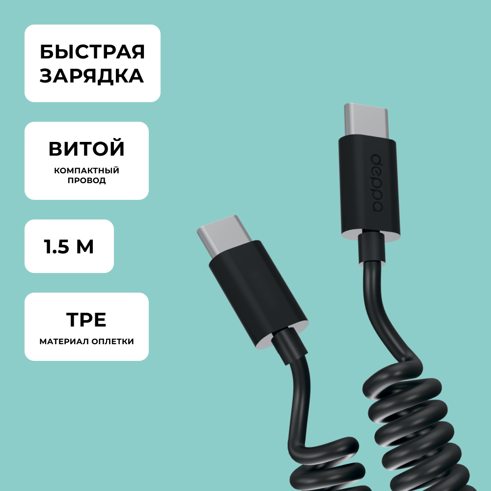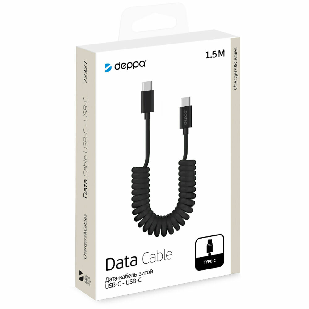 Кабель Deppa USB-C - USB-C, витой, 1.5 м черный