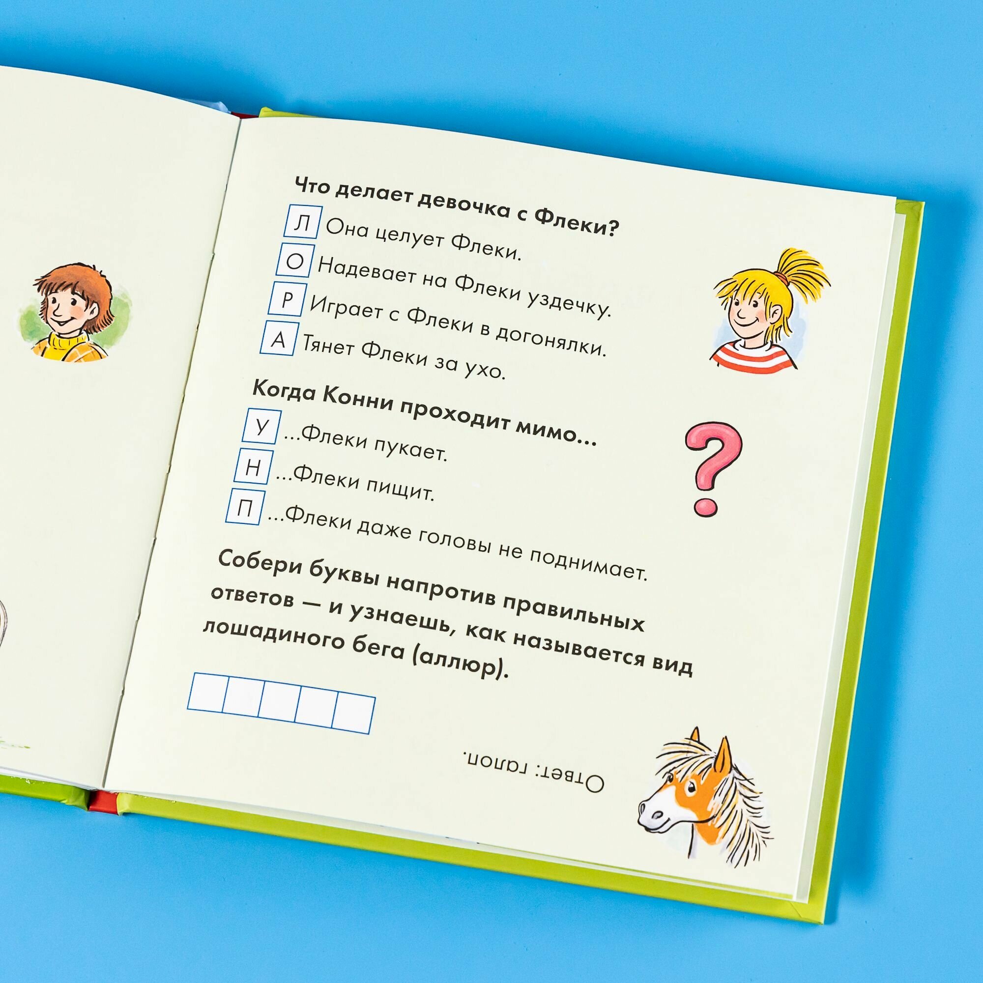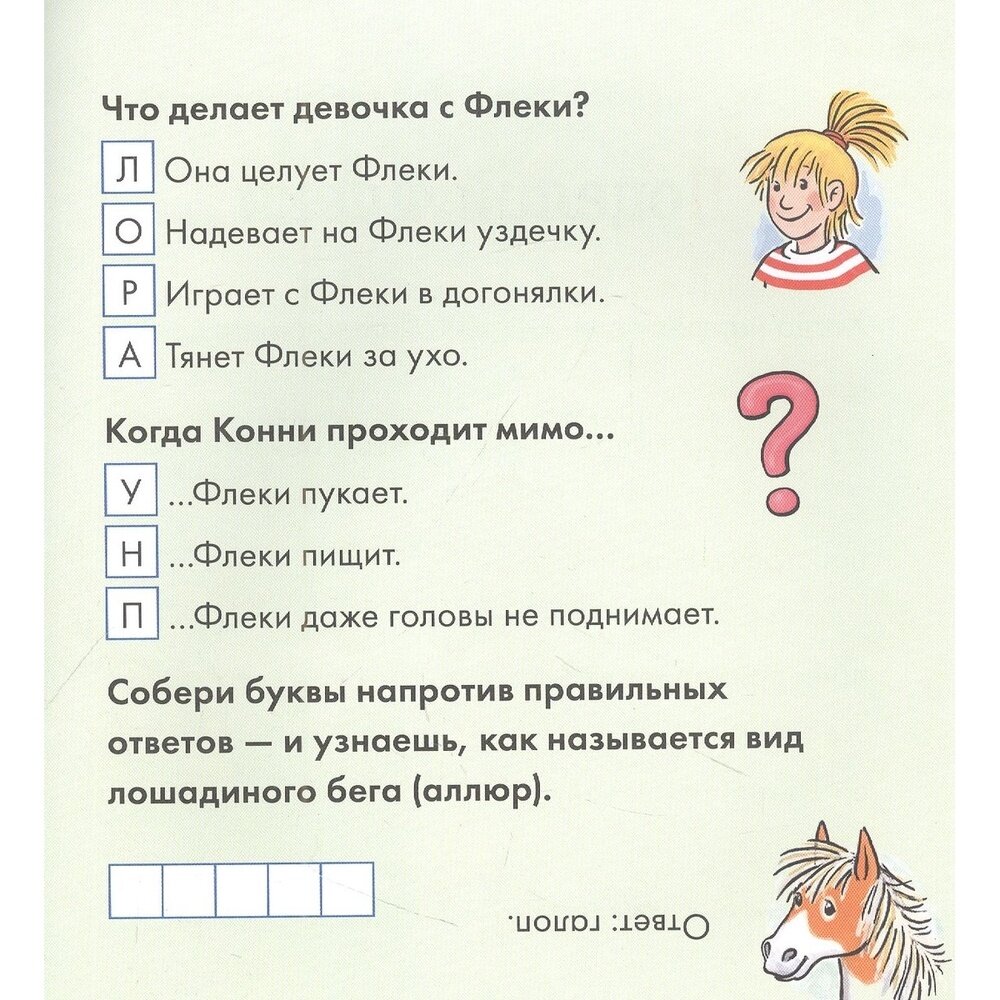Конни и её любимица, пони Флеки, — лучшие друзья с самого момента знакомства. Конни всегда тщательно вычёсывает её массажной щёткой, угощает вкусными яблоками и морковкой и навещает даже тогда, когда у них нет занятий. Но вдруг на конюшне появляется новая девочка, которая начинает ухаживать за любимицей Конни. Как же так? Флеки должна принадлежать только ей! Удастся ли Конни справиться с эмоциями и, возможно, найти нового друга? Присоединяйтесь к любимой героине, выполняйте увлекательные задания и узнайте много нового о лошадях.