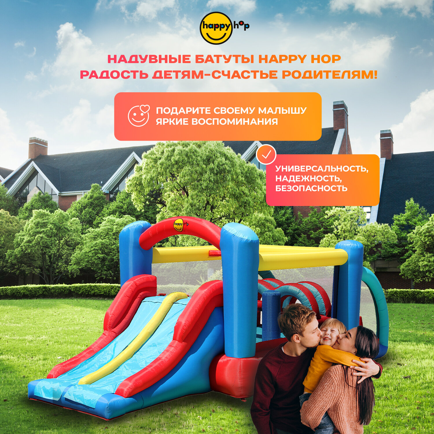- Happy Hop Надувной батут с горкой Неожиданные препятствия 9163