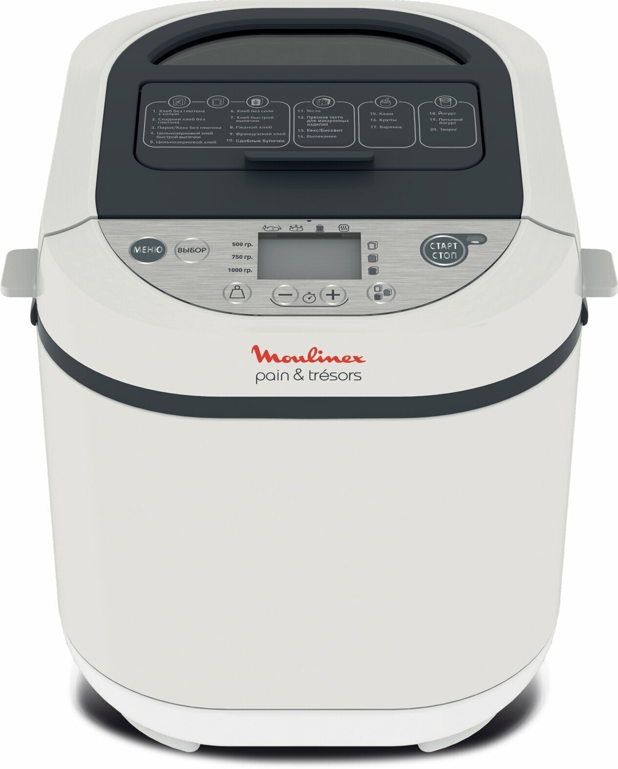 Техника для дома Moulinex Стильная хлебопечь Moulinex с электронной панелью управления станет настоящим помощником на вашей кухне. Множество встроенных программ позволяют замесить тесто и приготовить ароматный домашний хлеб с хрустящей корочкой, а также пироги, кашу, йогурт и многое другое. Съемная форма для выпечки с антипригарным покрытием обладает отличной теплопроводностью, благодаря чему выпечка в ней не пригорает и хорошо поднимается.