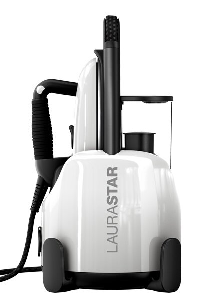 Гладильная система LauraStar LIFT– парогенератор от швейцарского производителя. При помощи такой системы можно гладить как на доске, так и вертикально. Устройство готово к работе всего через 3 минуты, в случае бездействия питание отключится через 10 минут. Постоянное давление пара составляет 3,5 бар. Для идеального достижения результата глажки компанией производителем была разработана дозированная подача пара. Процесс глажки проходит быстрее, чем обычным утюгом за счет того, что пар подается равномерно по всей платформе утюга. Закругленный конец утюга не создает лишних складок на такни. Ручка для переноски позволяет без труда переносить устройство. Шланг и сетевой провод также компактно размещаются на базе для компактного хранения.