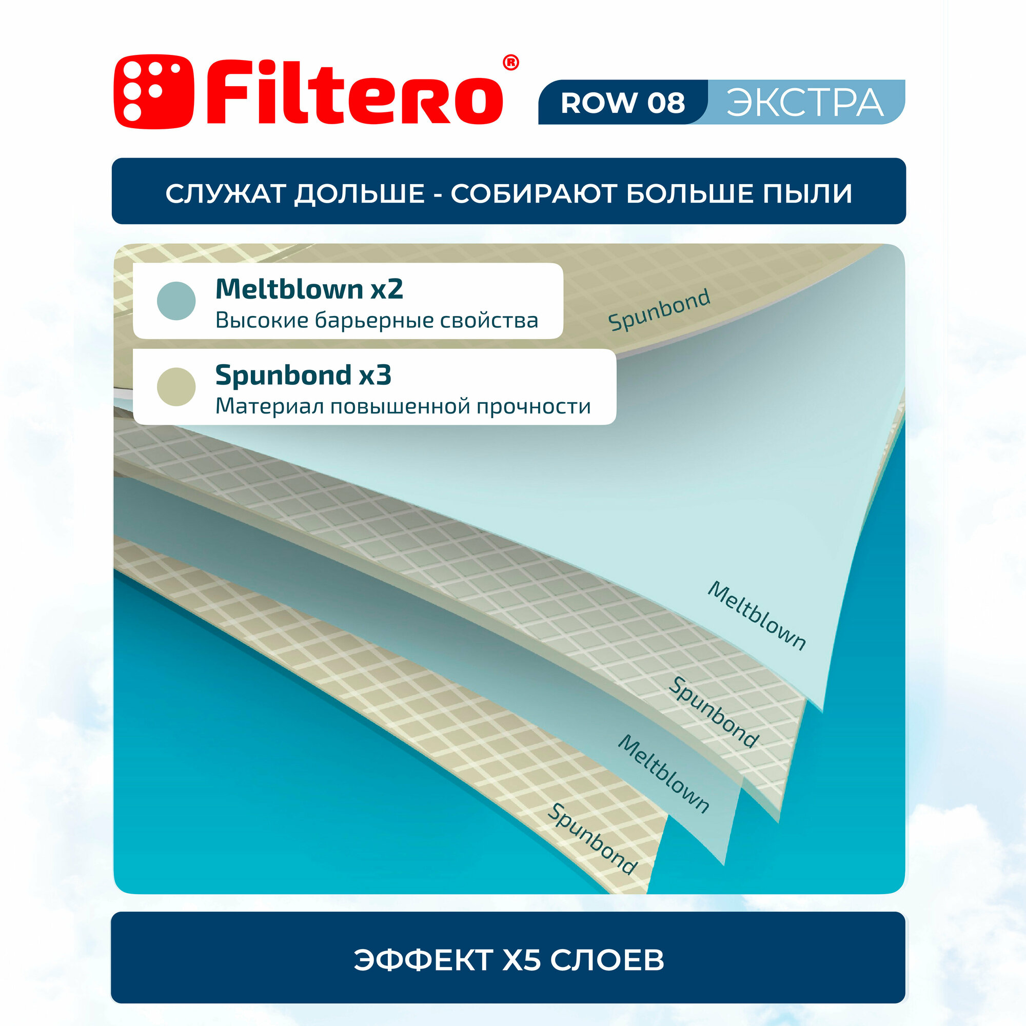 Техника для дома Filtero Комплект сменных мешков-пылесборников из синтетического микроволокна Filtero . Пылесборники Filtero экстра произведены из синтетического микроволокна MicroFib. Очень прочные, они не боятся острых предметов и влаги, собирают больше пыли и обеспечивают высокий уровень очистки воздуха. При этом мощность всасывания пылесоса сохраняется в течение всего периода службы пылесборника.